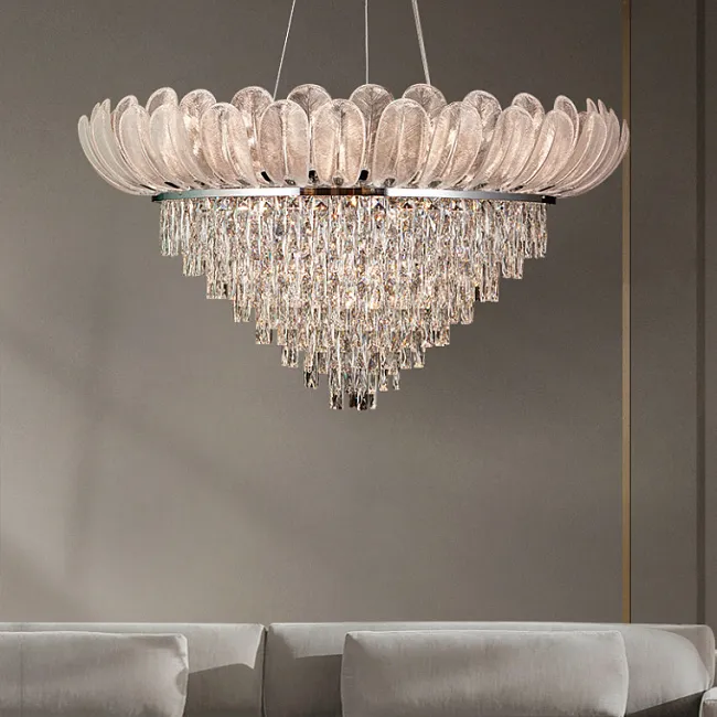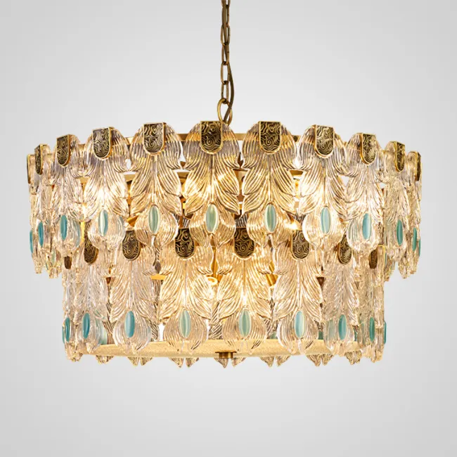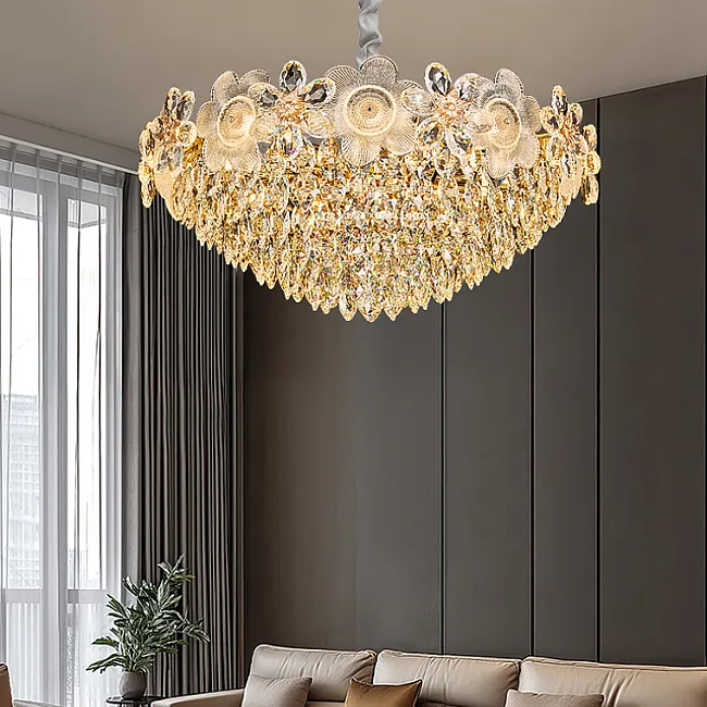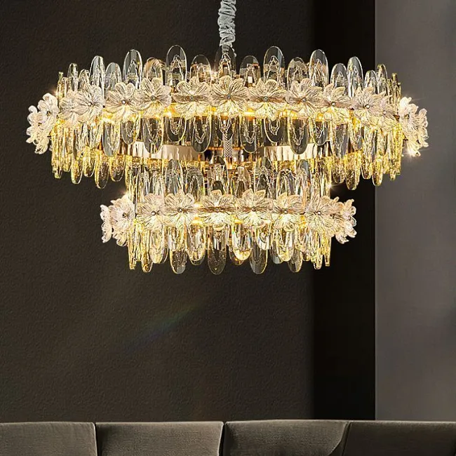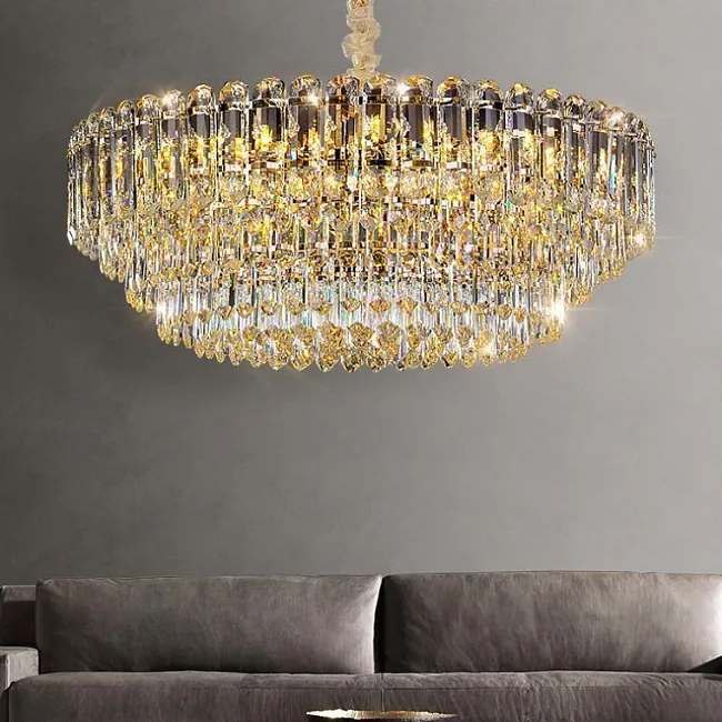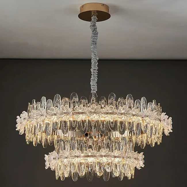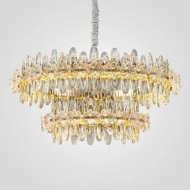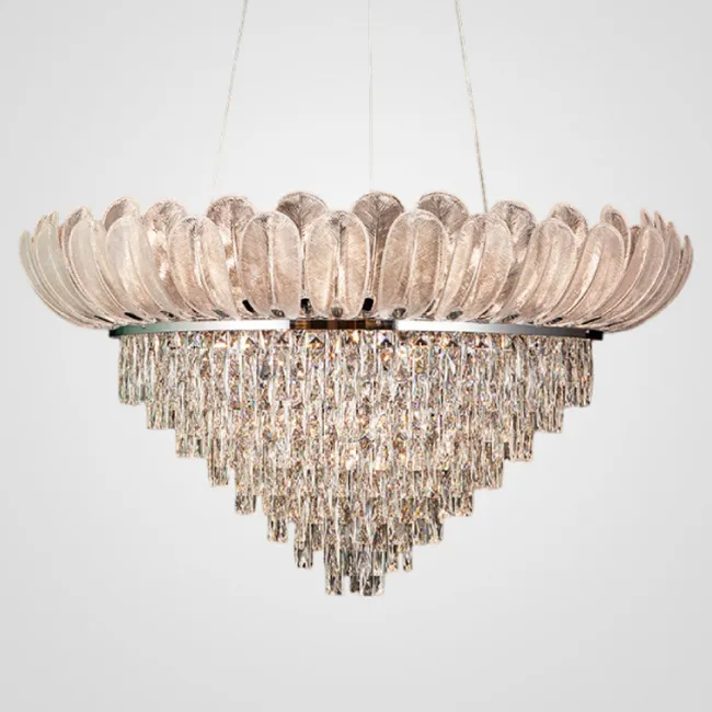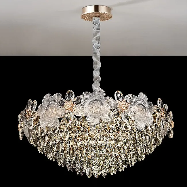 Серия люстр в виде комбинации колец и хрустальных подвесок на металлическом каркасе