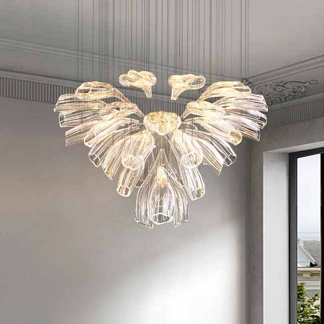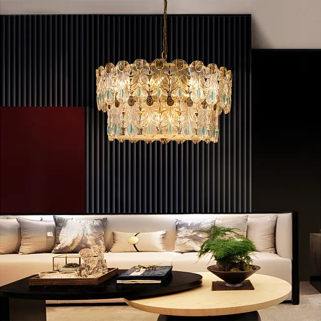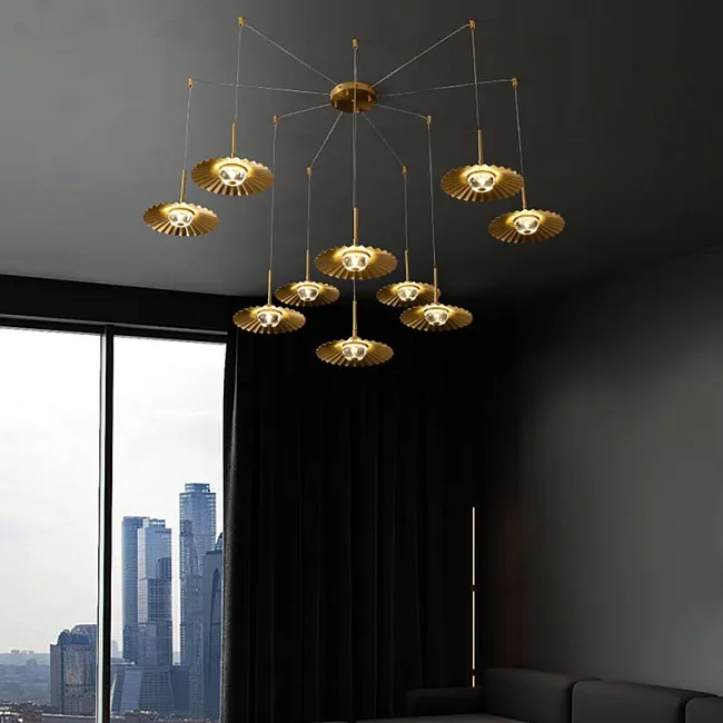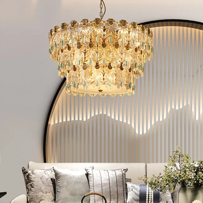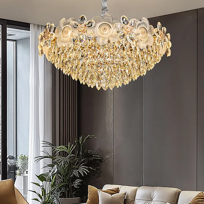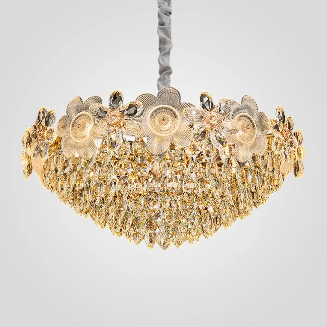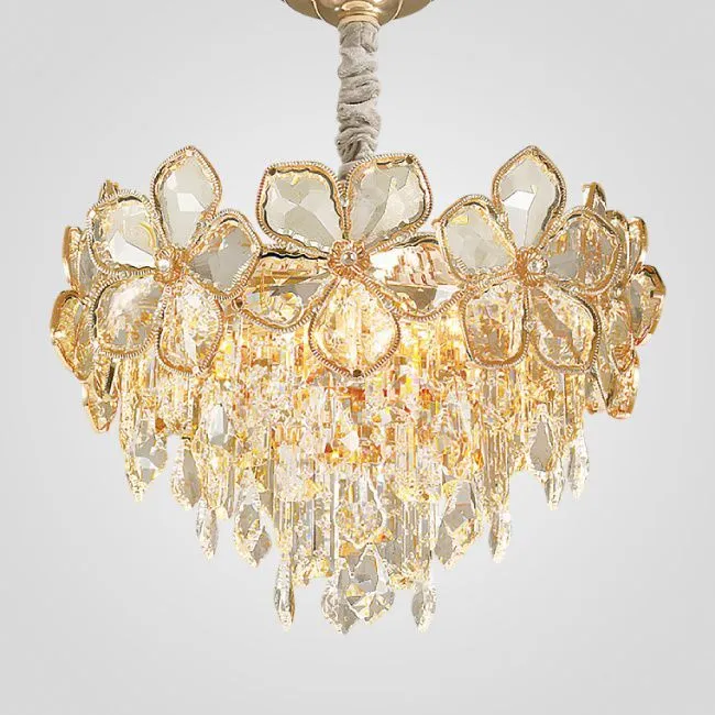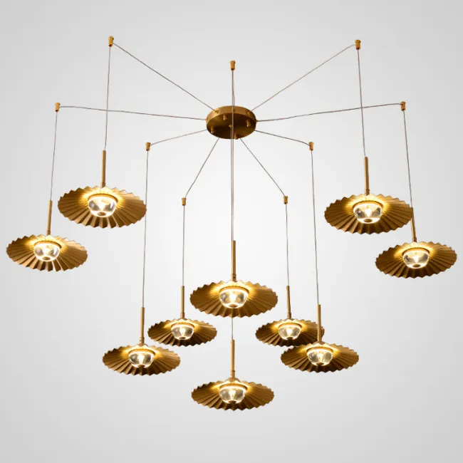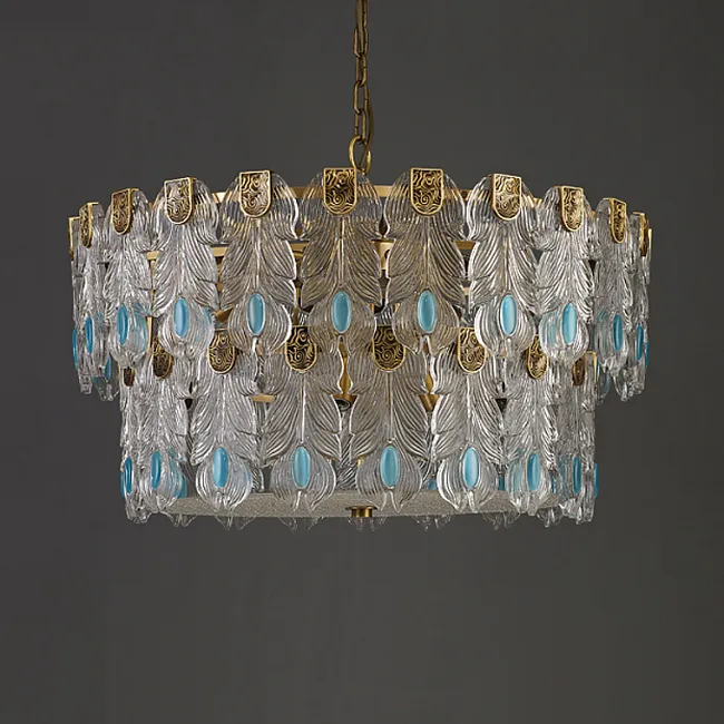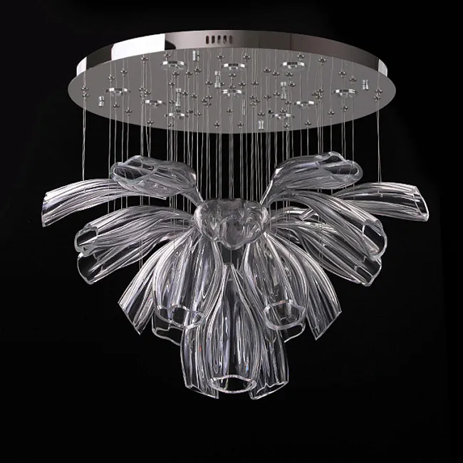 Серия люстр в виде комбинации колец и хрустальных подвесок на металлическом каркасе