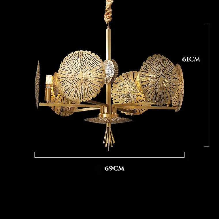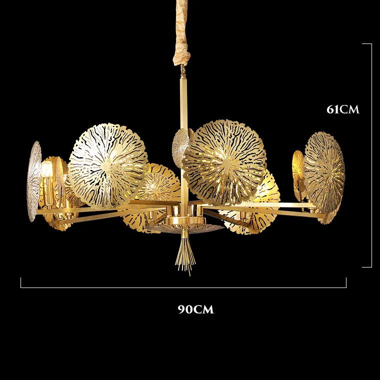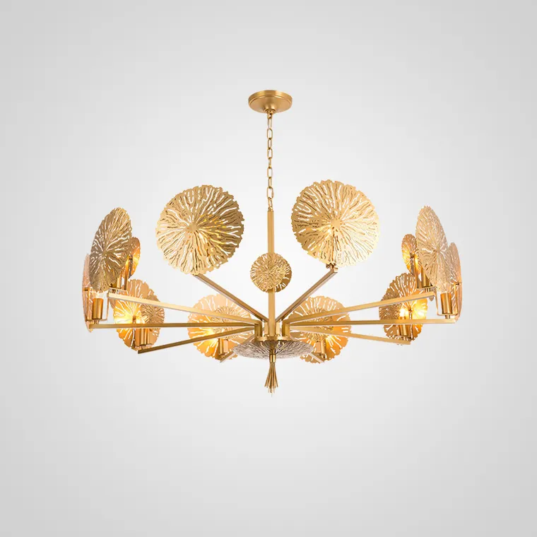 Подвесная люстра INCA с резными металлическими плафонами на лучах, с имитацией листа лотоса