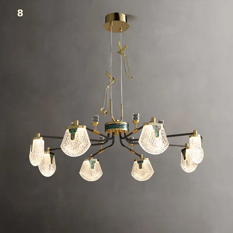 Сделайте свой дом еще более элегантным и уютным с нашей серией светодиодных люстр IRWIN! Эти уникальные люстры оснащены рельефными рассеивателями, декорированными ракушками и латунными птицами, что делает их не только функциональными, но и привлекательными элементами декора.