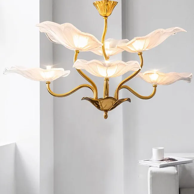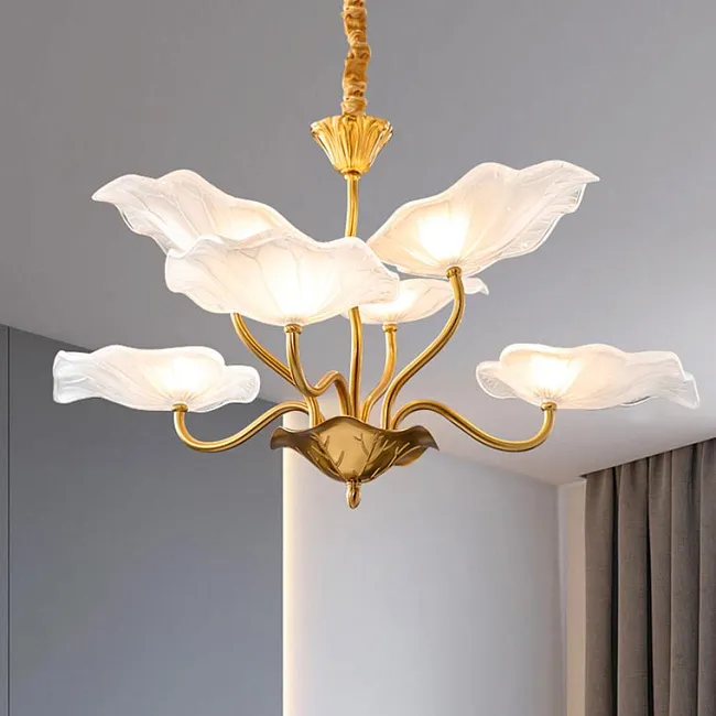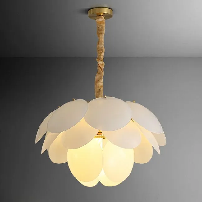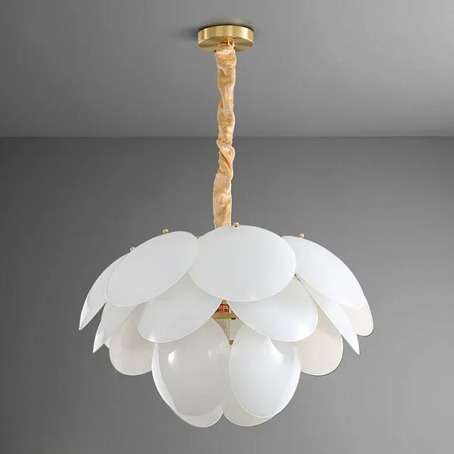Это что-то невероятное, как из сказки. Светящийся стеклянный цветок теперь красуется на потолке в моей спальне, я в восторге от этого дизайна! Лепестки (или листики, кто как видит) прозрачные, как будто изнутри горят. Корпус тут латунный, и он очень удачно со стеклом сочетается. Всё стильно и практично. Лампы электроэнергии едят немного. И особенно порадовало качество. За него стоит заплатить заявленную цену.