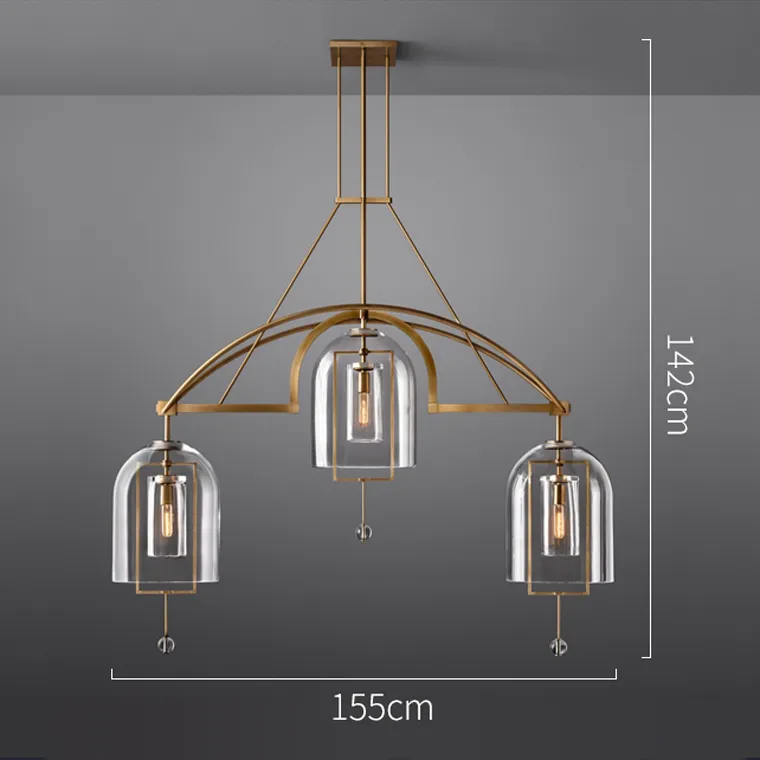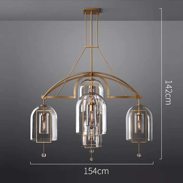 Дизайнерская люстра на купольном каркасе с двойными стеклянными плафонами с декоративными металлическими рамками и стеклянными подвесками на металлических стержнях