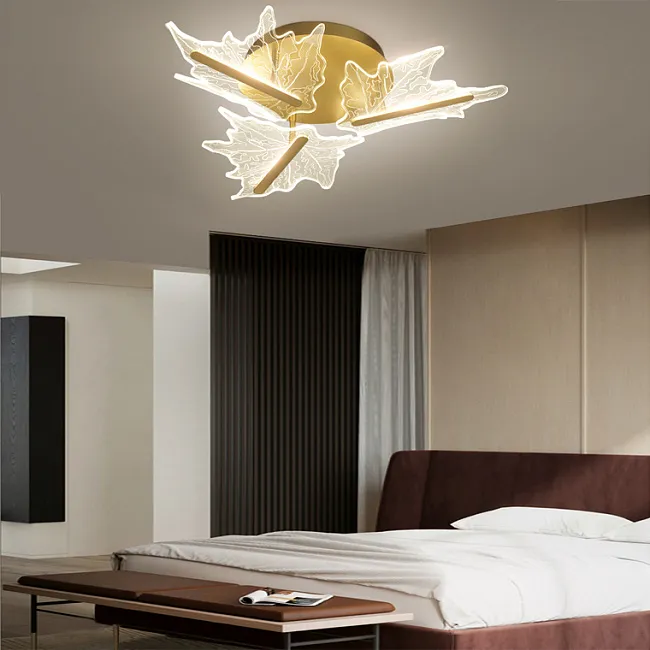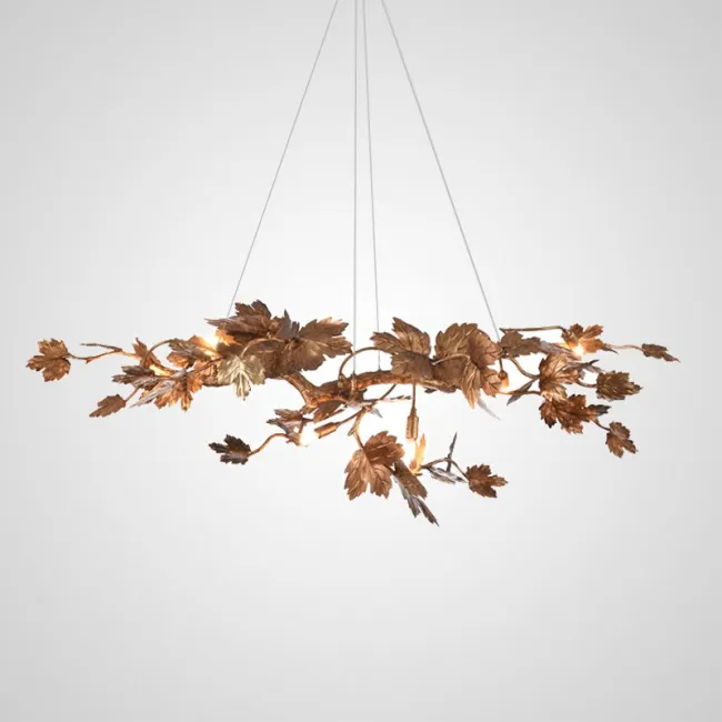 Дизайнерская серия люстр Karanda с прозрачными стеклянными плафонами в виде кленовых листов на кольцевом каркасе станет ярким акцентом в любом интерьере. У нас доступны модели с различным количеством ламп - 6 (размер Ø 55×65 см), 9 (Ø 80×65 см), 12 (Ø 100×65 см) и 18 (Ø 100×95 см).
