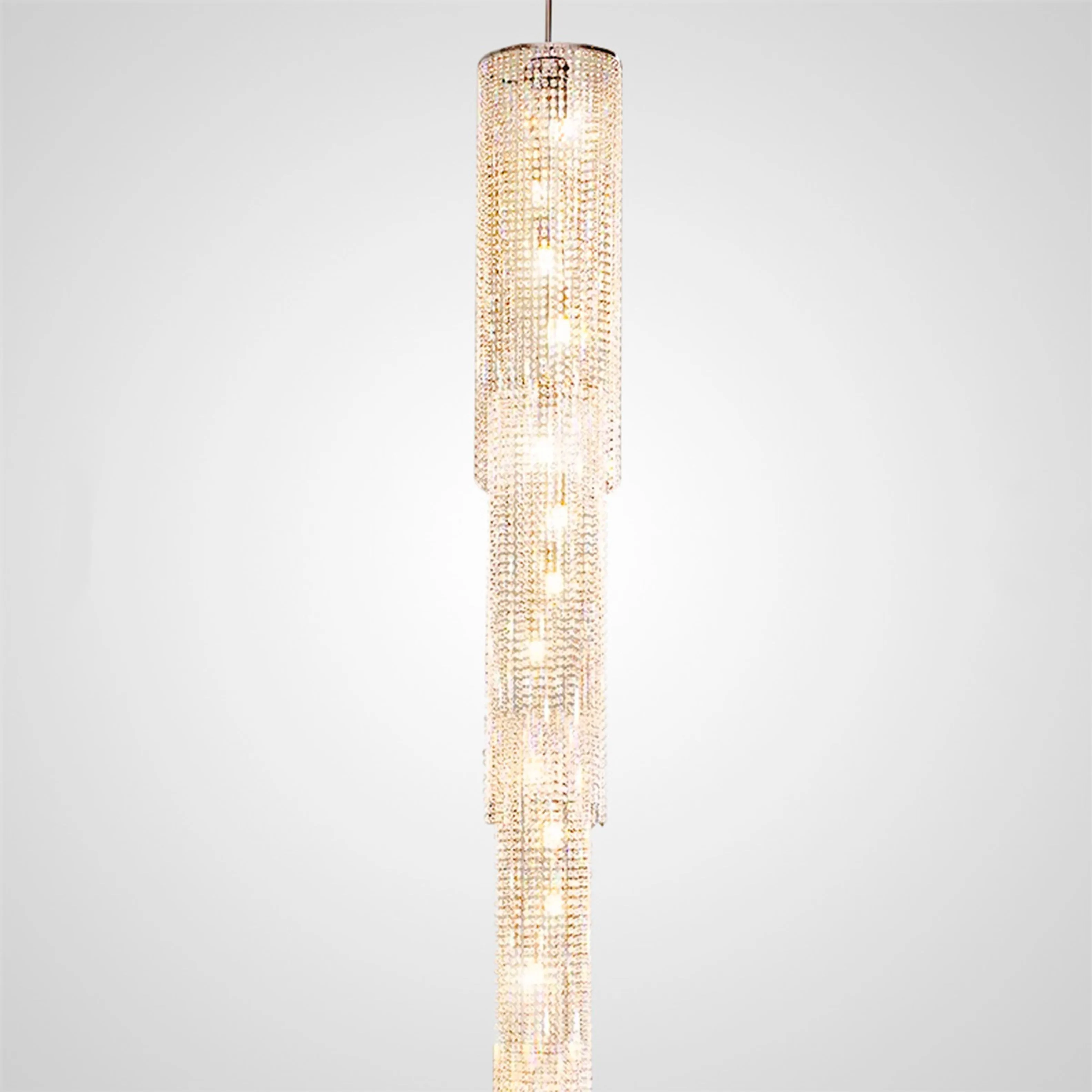 Люстра Kaskad с 16 лампами с типом цоколя Е14 представляет собой настоящее произведение искусства благодаря подвескам из ограненного хрусталя, которые создают неповторимые световые эффекты. Размеры люстры составляют 30 x 300 см, что позволяет ей идеально вписаться в лестничный проем особняка. Длина подвесной цепи составляет 50 см.