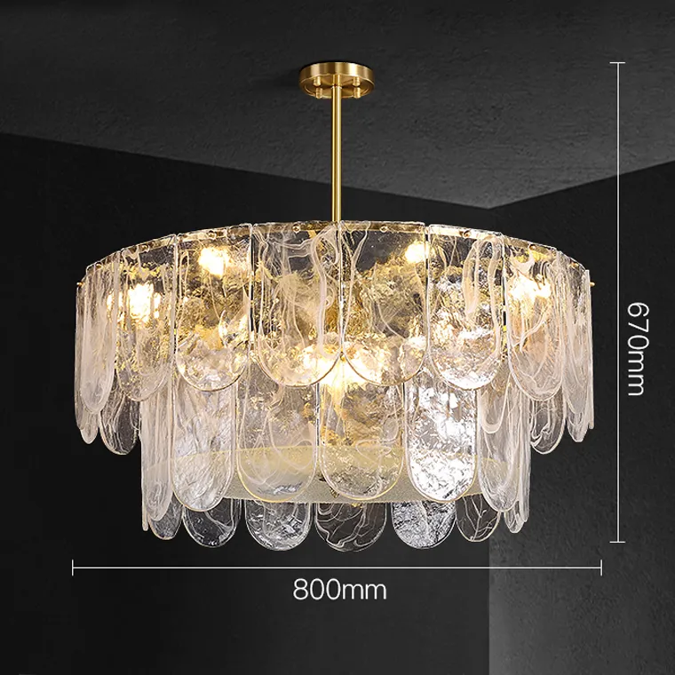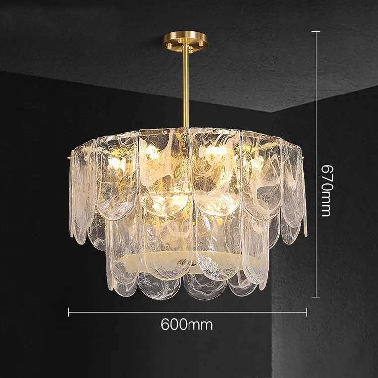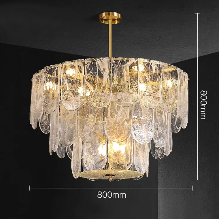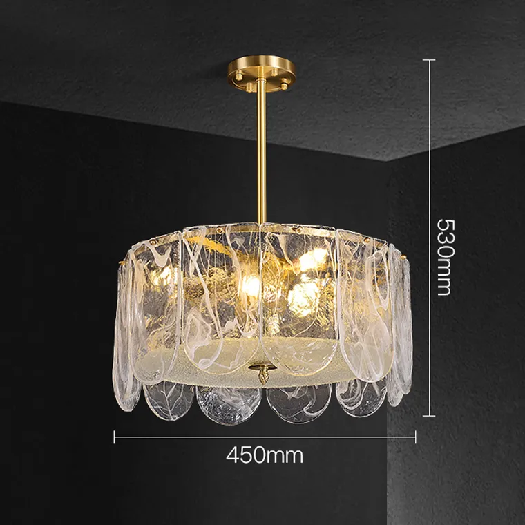 Серия люстр с абажурами из округлых стеклянных пластин с эффектом «Белый дым»