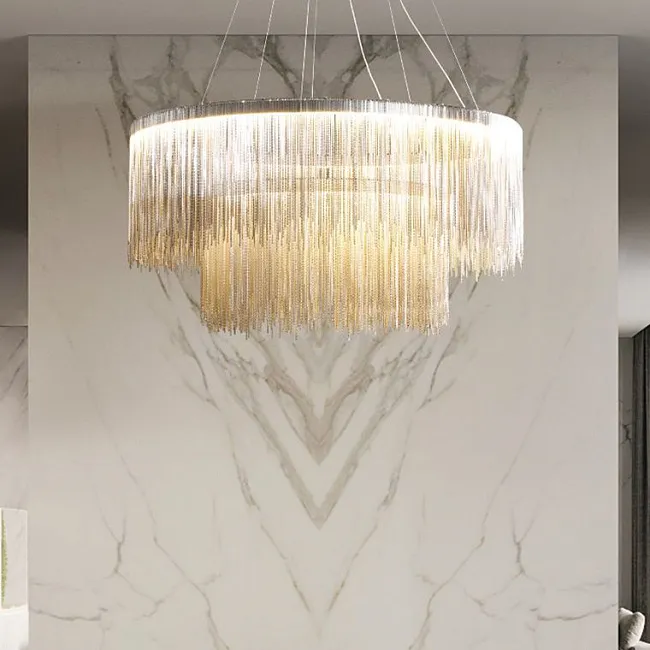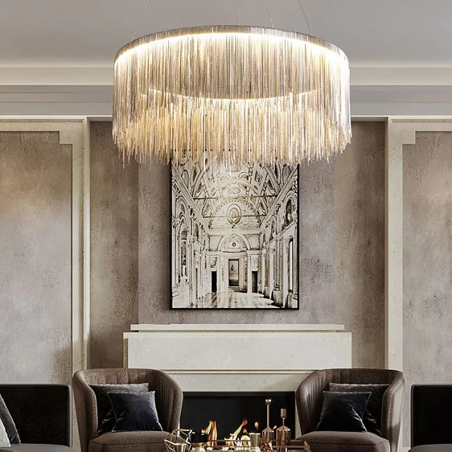 Дизайнерская люстра LADY - новое слово в классическом дизайне. Эта люстра представляет собой многослойную конструкцию, состоящую из цепочек с хрустальными бусинами, которые придают ей искрящийся и воздушный вид.