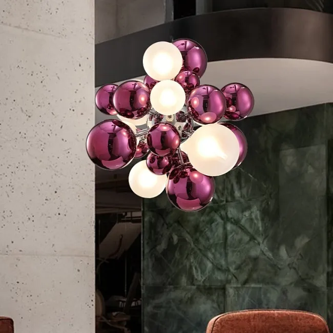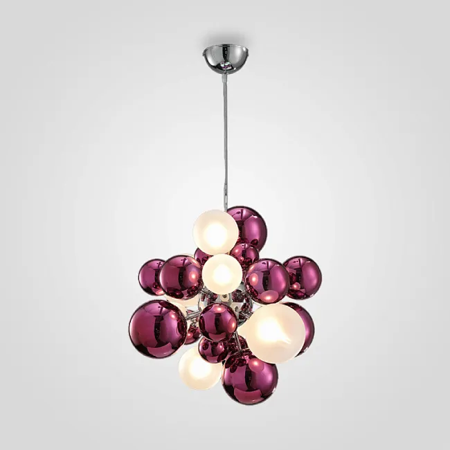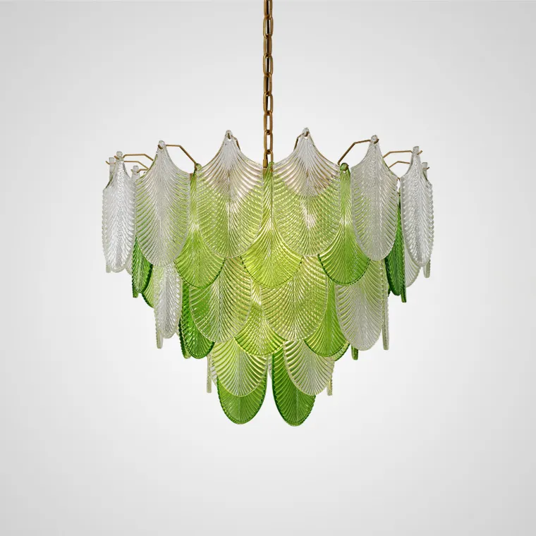 Каскадная люстра с рельефными рассеивателями в форме перьев из зеленого стекла