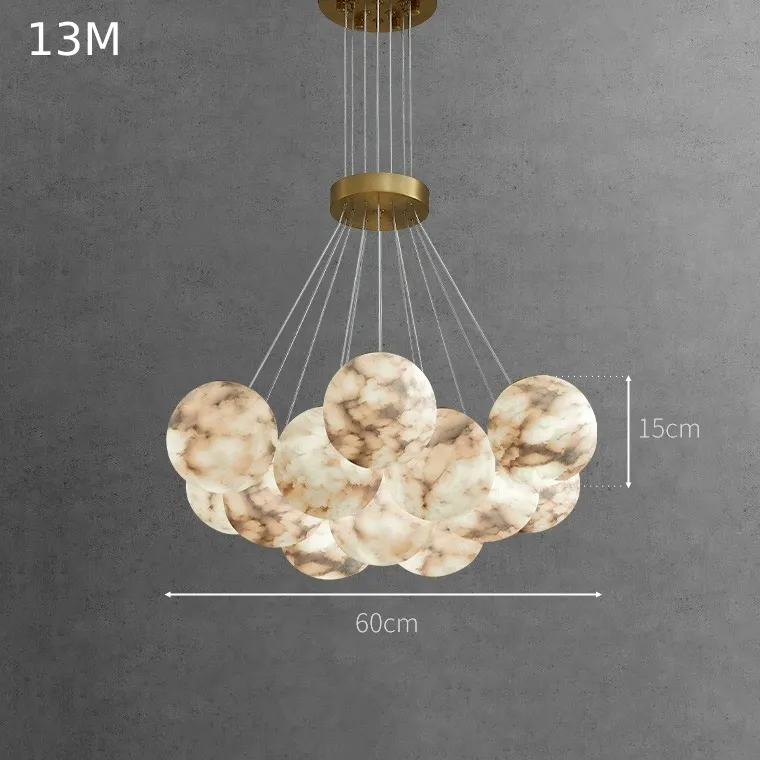 Серия подвесных люстр с мраморными плафонами шарообразной формы