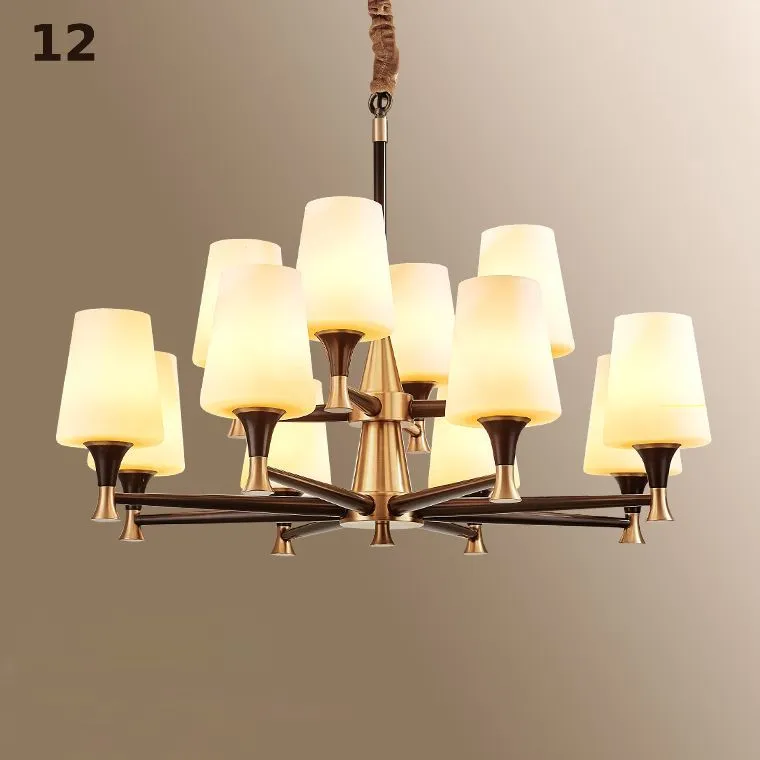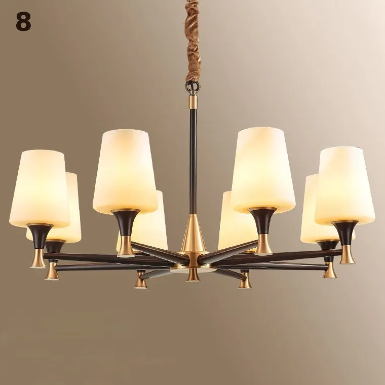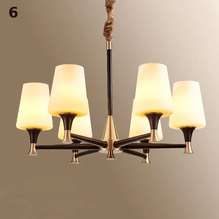 Основанием этой люстры служит комбинированный черный и латунный каркас, который не только придает ей изысканный и роскошный вид, но и гарантирует прочность и долговечность. Конусовидные плафоны, выполненные из белого стекла, приглушают световой поток, что важно для спальни.