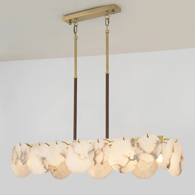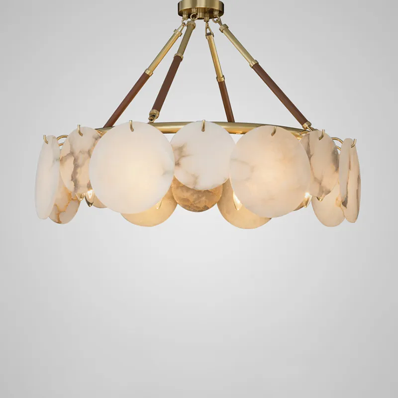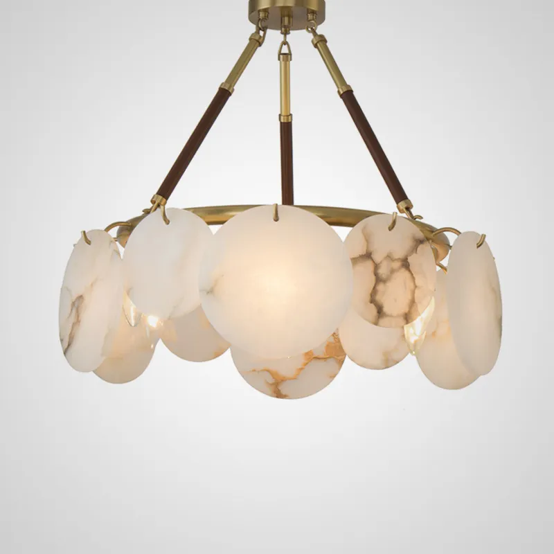 Купить люстру LIOMA отличное решение, когда требуется дополнить интерьер изящными элементами в стилистике середины XVIII века. Светильник из натурального мрамора и фактурного стекла подходит лучше аналогов. Каркас выполнен из золота и кожаных материалов. У деталей источника света разные габариты, что дополняет их неповторимость.