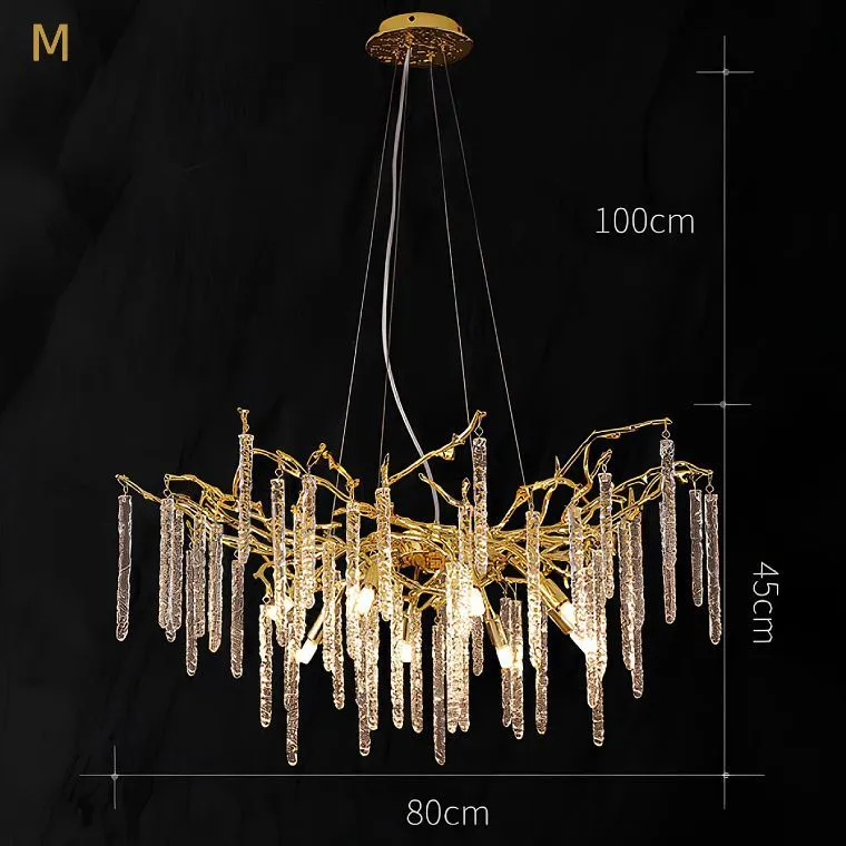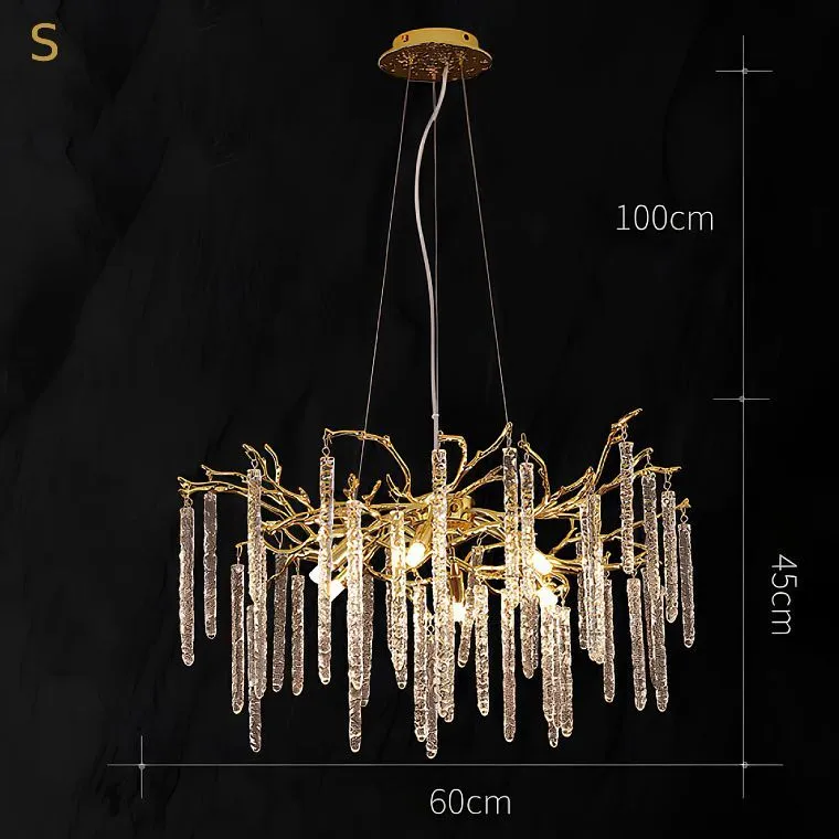 Ветвистый и причудливый каркас, выполнен из благородной латуни, имитируя таинственные изгибы ствола и ветвей дерева. Каждая стеклянная подвеска в виде сосульки сверкает, ловя свет и отражая его тысячи искорок, словно маленькие звезды, танцующие в вашем доме. Это эмоциональное путешествие в мир роскоши и комфорта, в который хочется возвращаться снова и снова. Она станет центром внимания в вашей гостиной или спальне, добавив утонченности и элегантности любому интерьеру. Каждый вечер, погружаясь в мягкое сияние, вы будете чувствовать теплоту и уют, которые очаровывают вас и ваших гостей снова и снова.