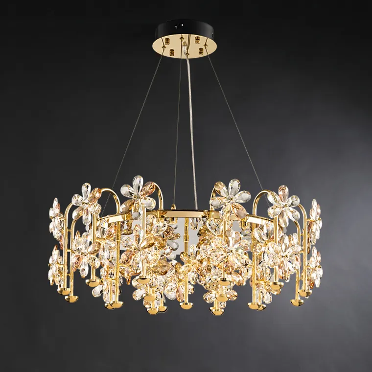 Дизайнерская светодиодная люстра с хрустальными рассеивателями в виде цветов на изогнутых рожках