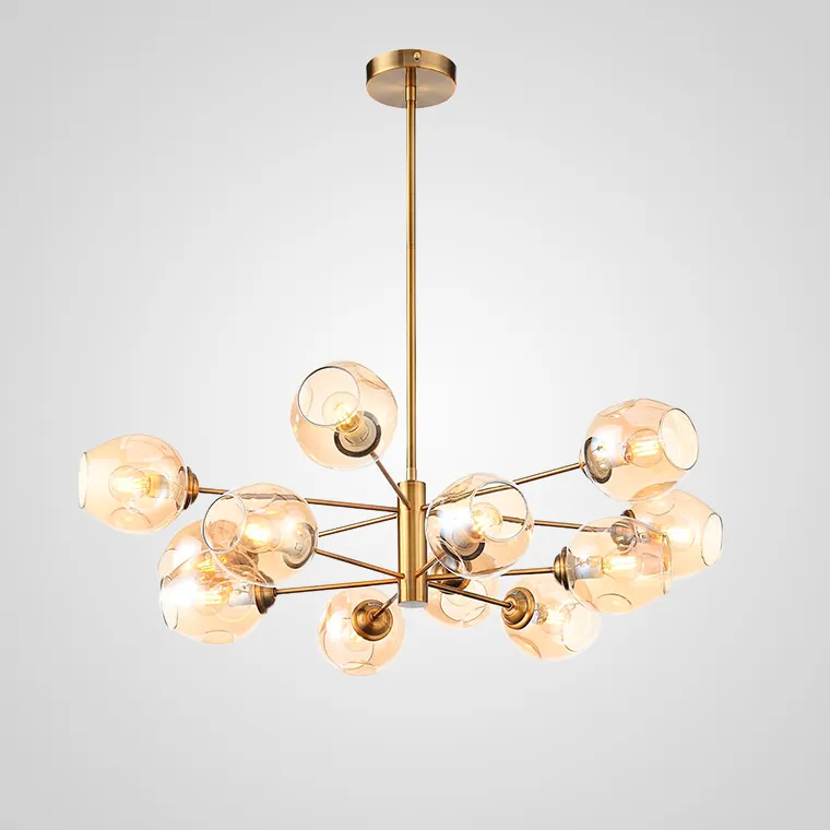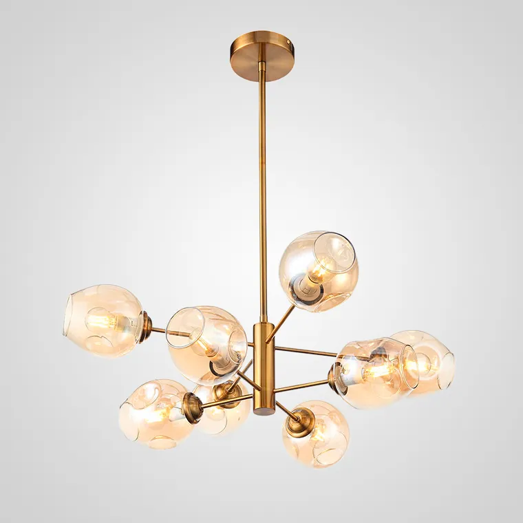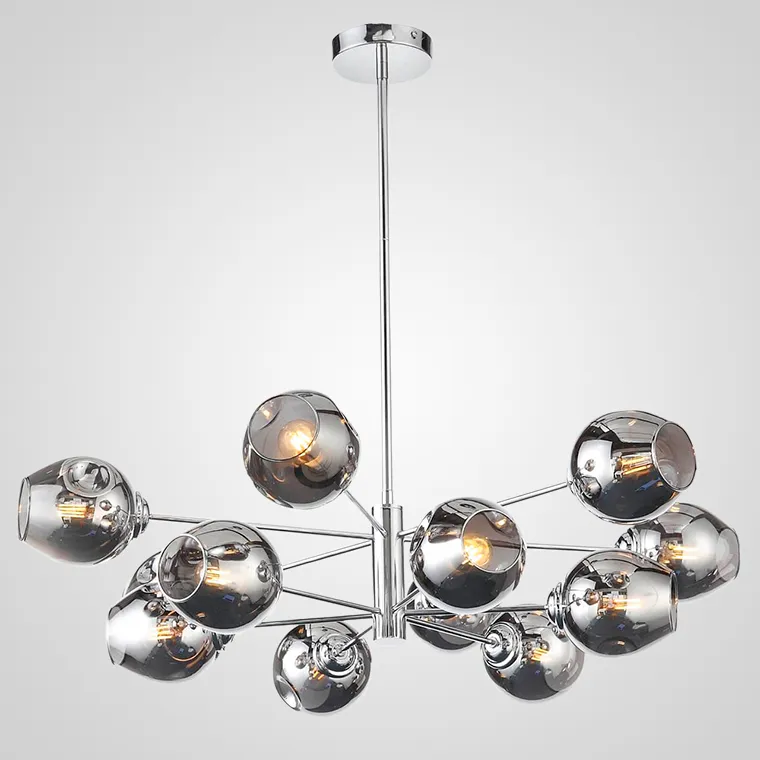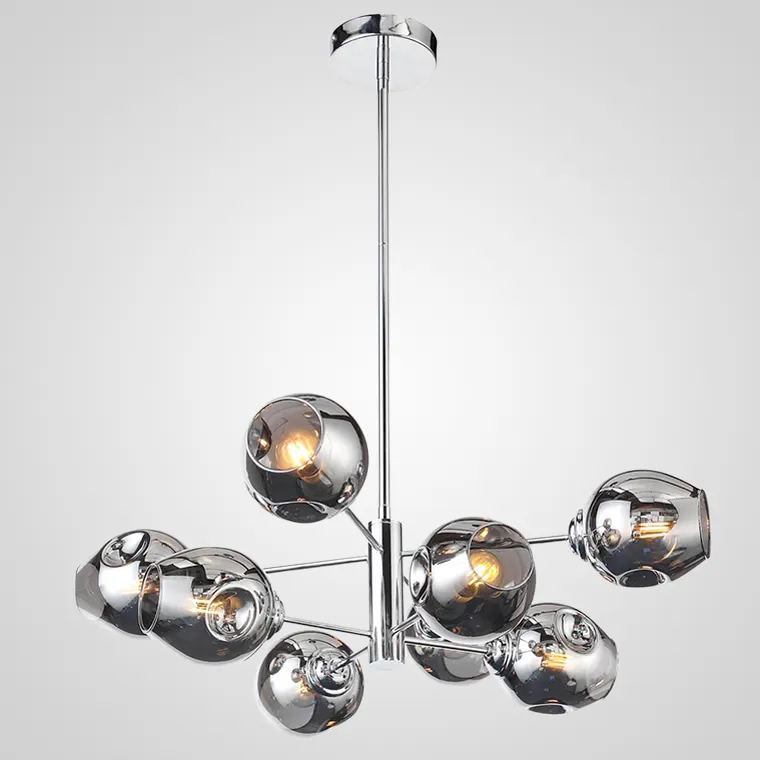 Люстра со стеклянными плафонами из выдувного стекла на металлической стойке