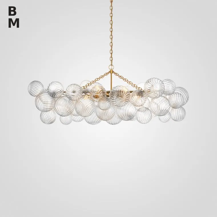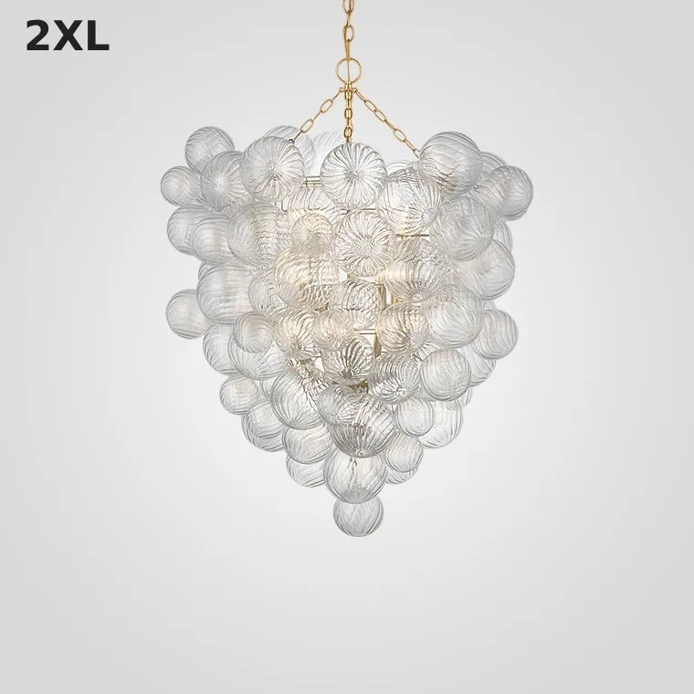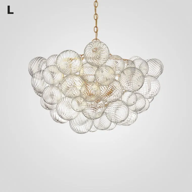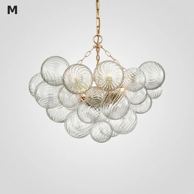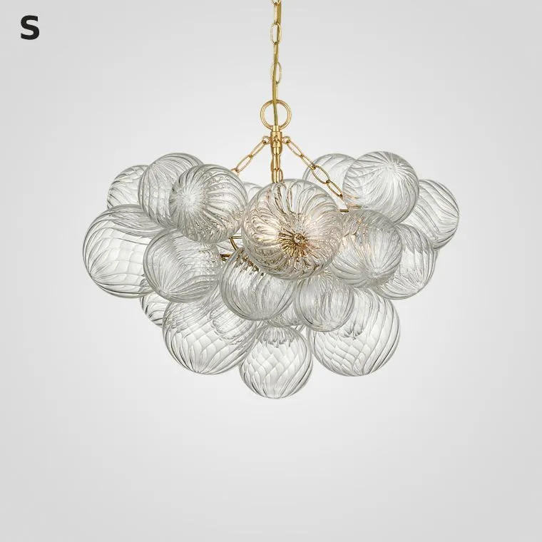 Серия люстр с декоративными шарами разного размера из рельефного стекла на латунном корпусе