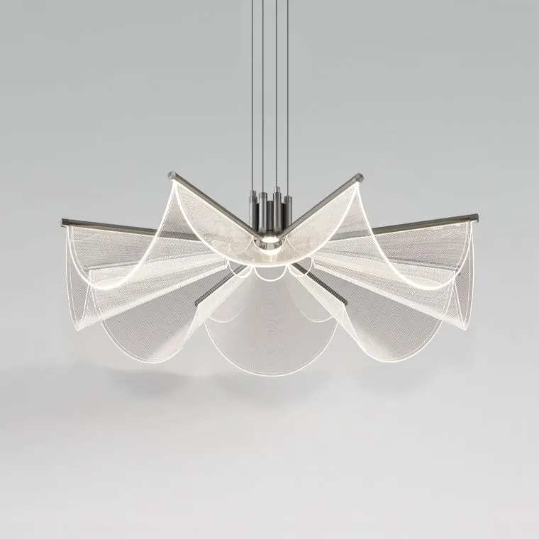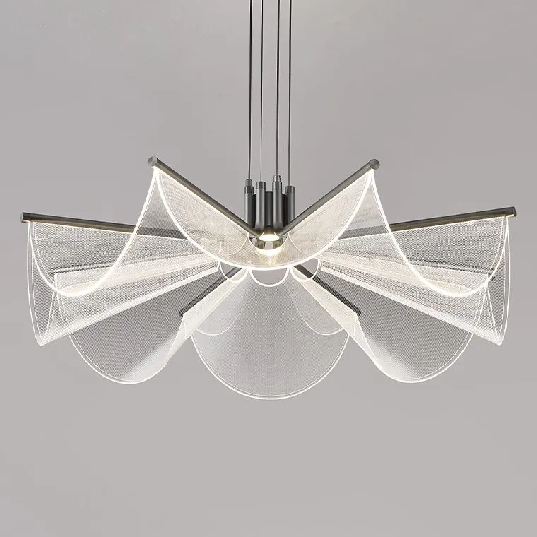 Представьте себе серую графитовую люстру, смело расходящуюся лучами. Своими плавными, волнообразными изгибами, напоминающими цветок вьюна, эти люстры излучают магию и очарование. Прозрачные акриловые рассеиватели, украшенные тонким паттерном, словно хрустальные лепестки, мягко преломляют свет, создавая нежную и уютную атмосферу.