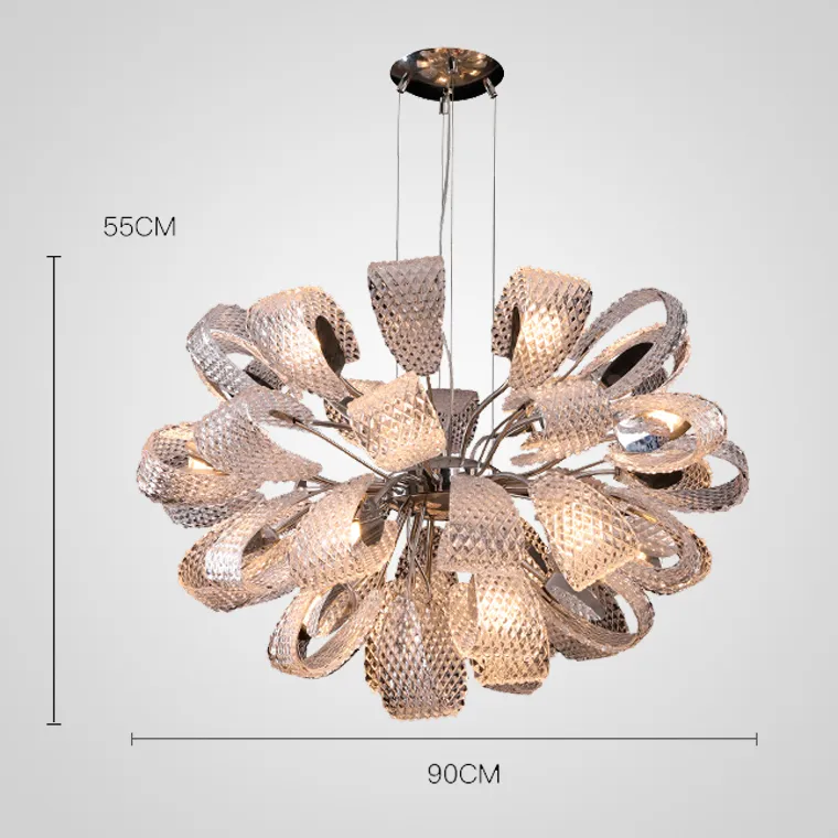 Серия дизайнерских люстр со стеклянными плафонами в форме лепестков с эффектом панциря