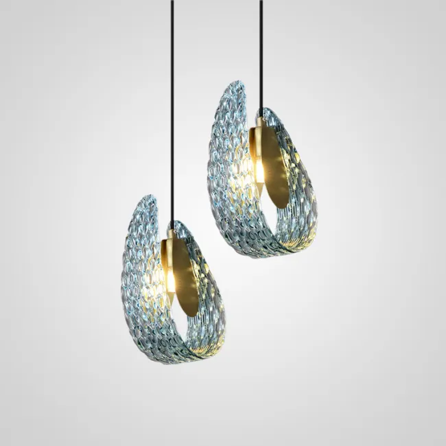 Серия дизайнерских люстр со стеклянными плафонами в форме лепестков с эффектом панциря
