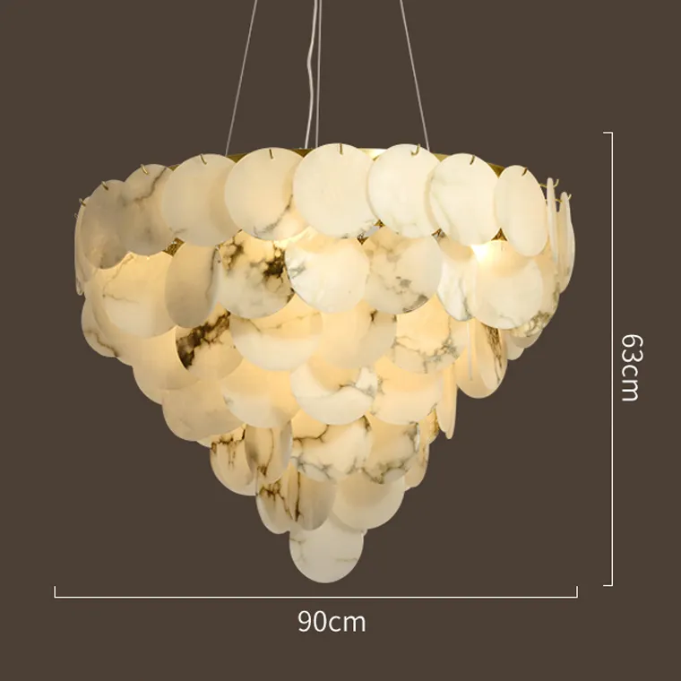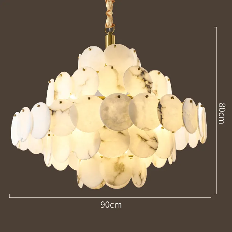Люстра в стиле постмодерн с подвесными дисками из мрамора