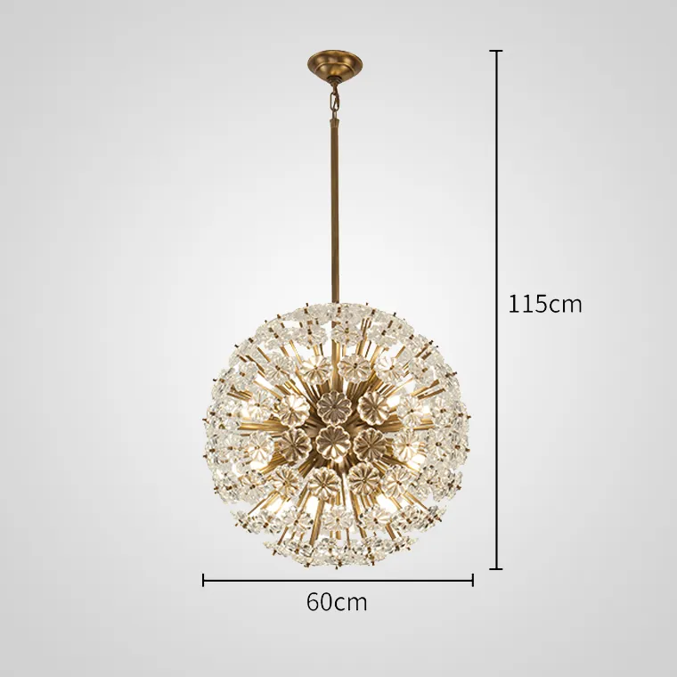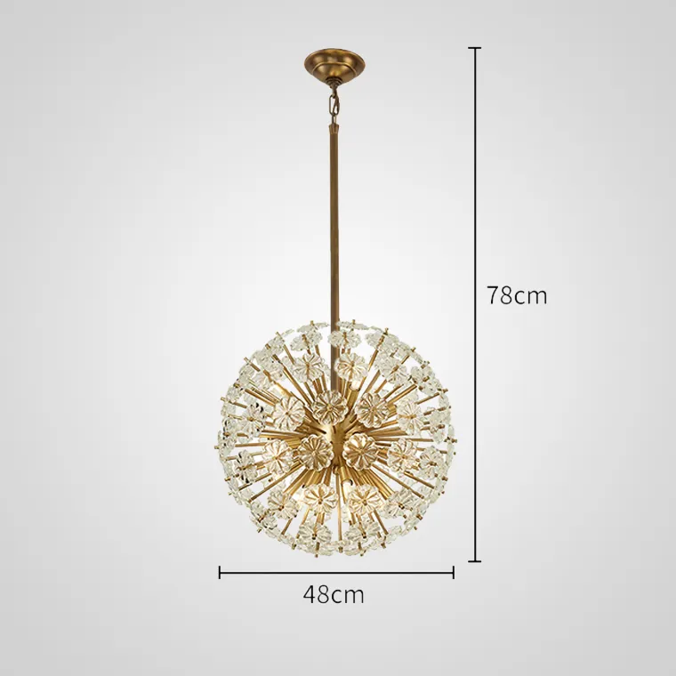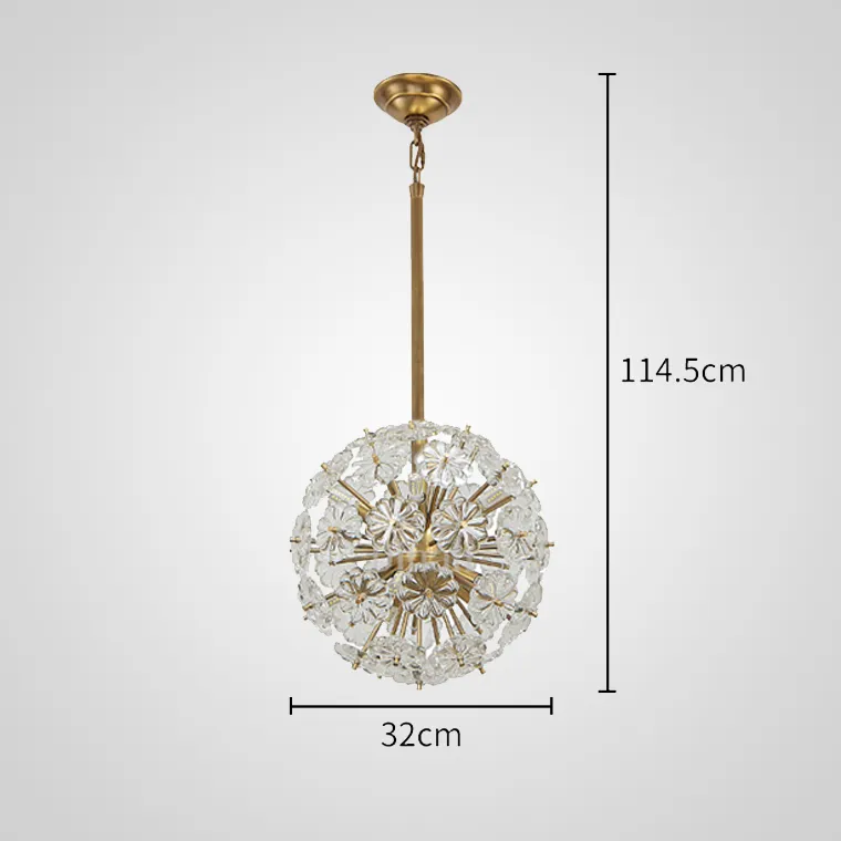 Подвесная люстра шарообразной формы со стеклянным декором в виде цветов по всей поверхности