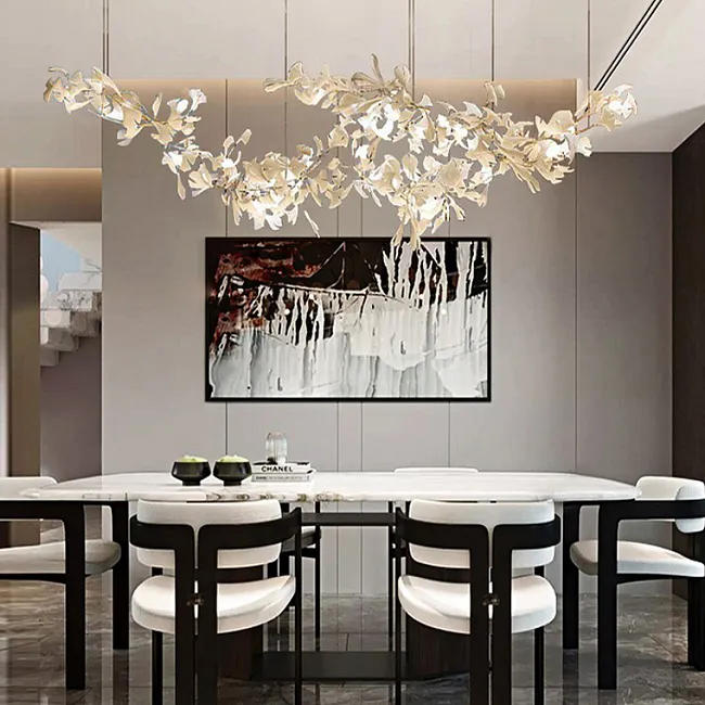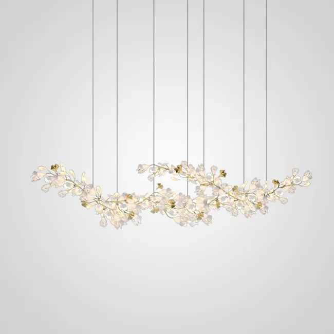 Серия дизайнерских люстр в виде пучка изогнутых рожек с белыми плафонами в форме цветов