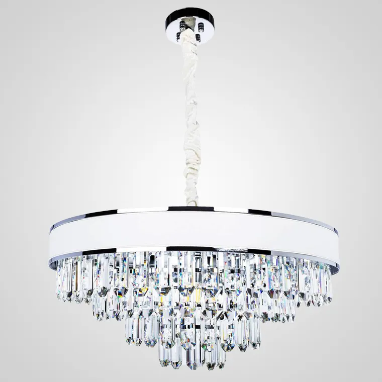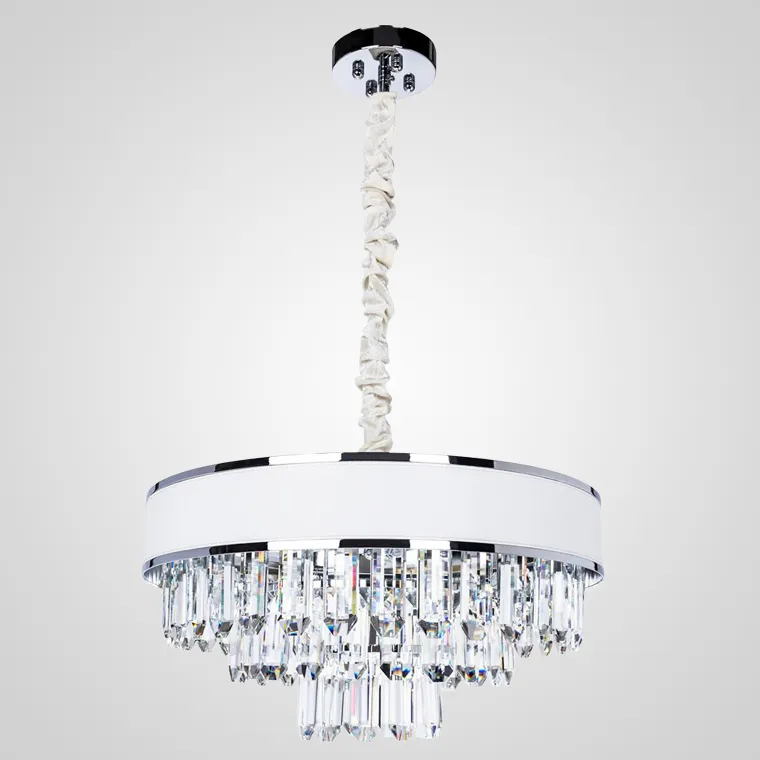 Подвесная люстра с круглым кожаным абажуром и хрустальными повесками