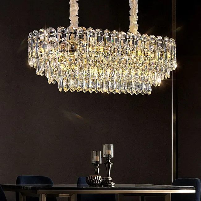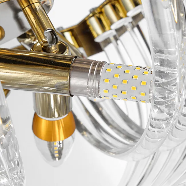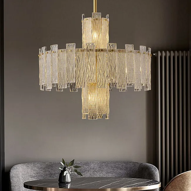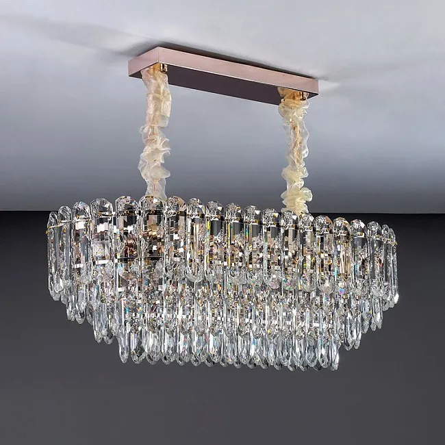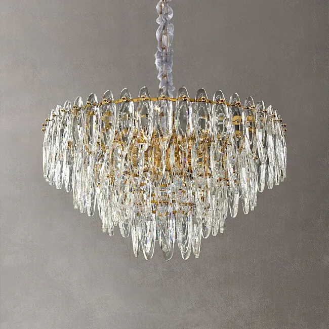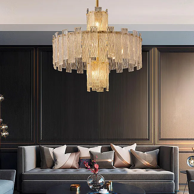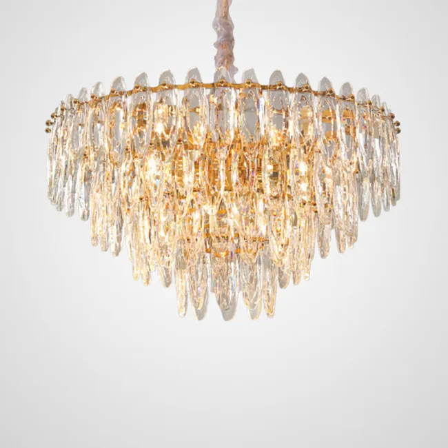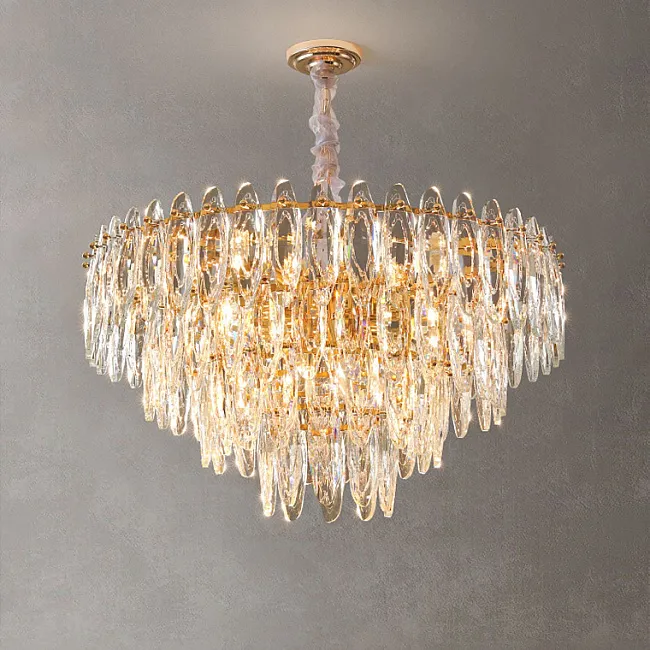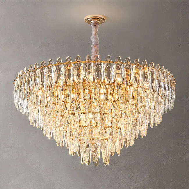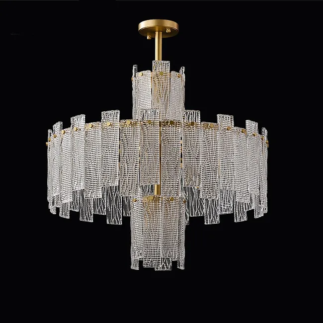 Серия многоярусных люстр с многогранными рассеивателями из хрусталя с эффектом льда