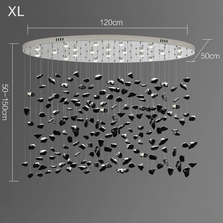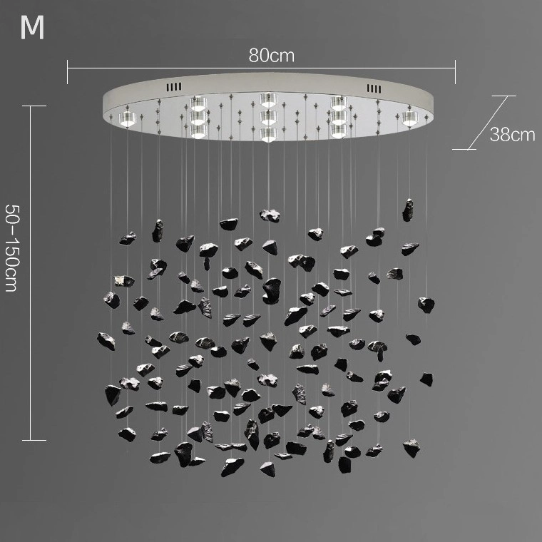 Серия светодиодных инсталляций из подвесных элементов неправильной формы из цветного искусственного камня с точечными источниками света на потолочном основании