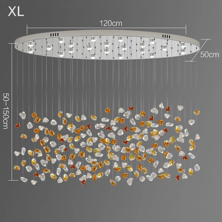 Серия светодиодных инсталляций из подвесных элементов неправильной формы из прозрачного и цветного стекла с точечными источниками света на потолочном основании