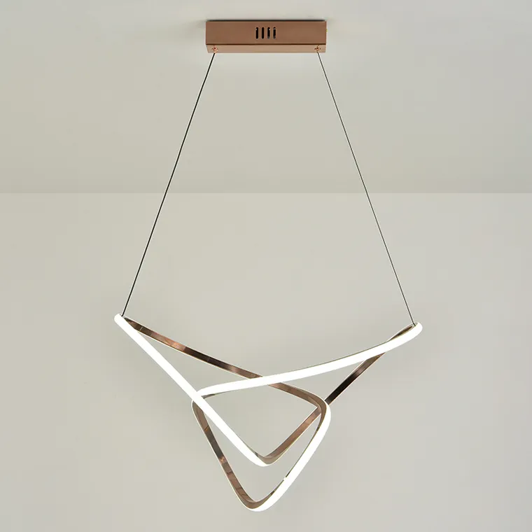 Светодиодный светильник с металлическим ленточным корпусом в виде ассиметричных пространственных объектов