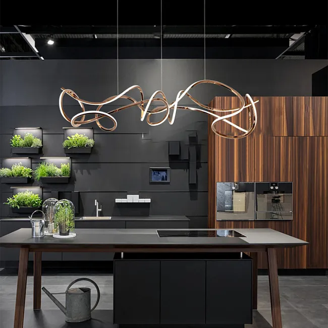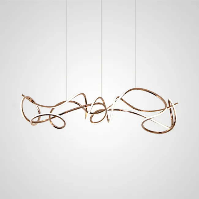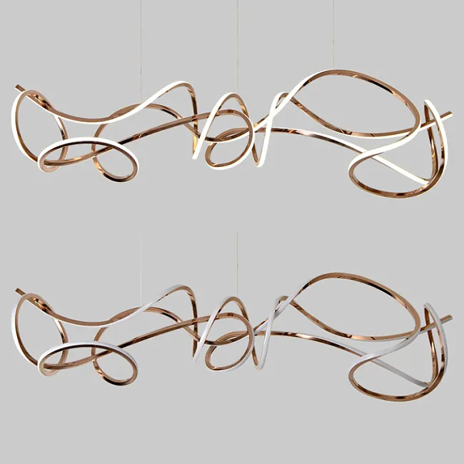 Светодиодный светильник с металлическим ленточным корпусом в виде ассиметричных пространственных объектов