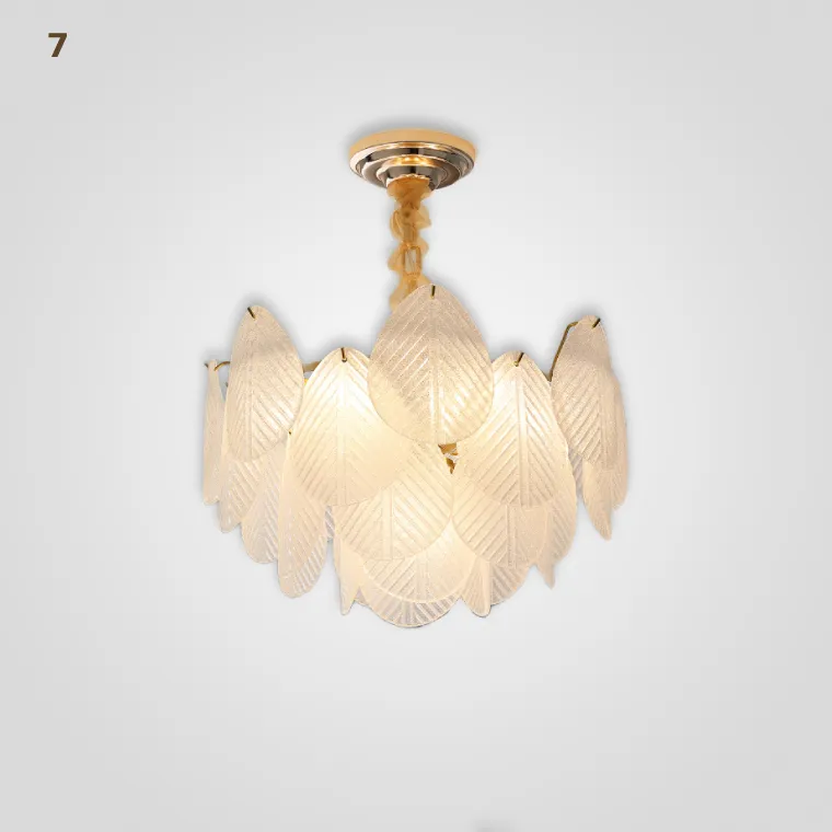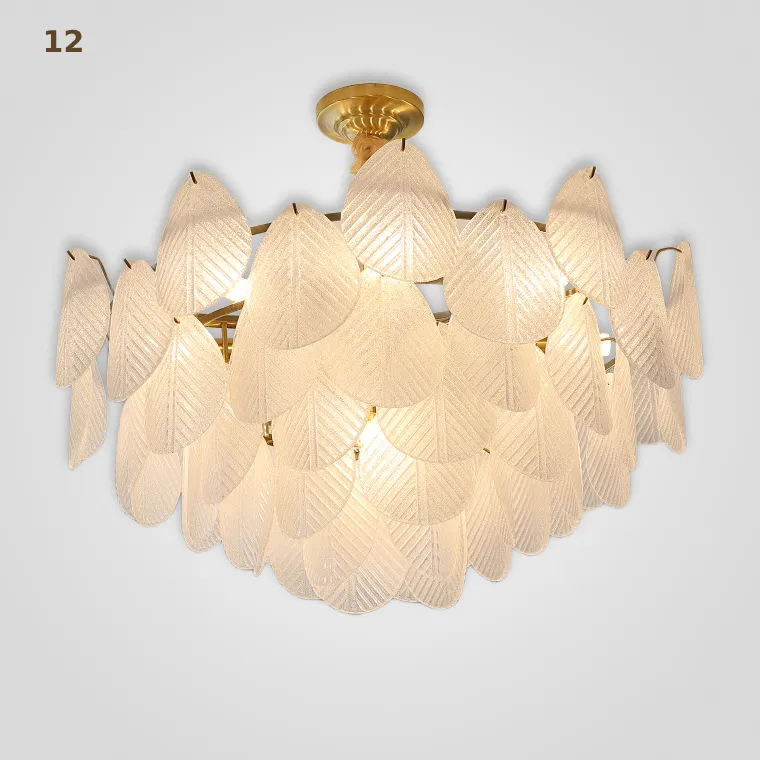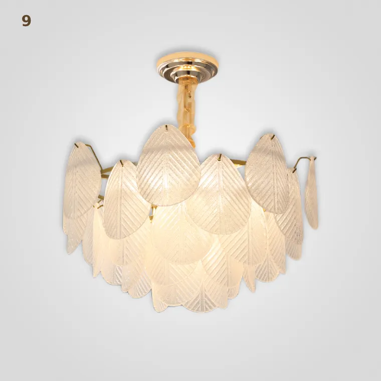 Серия каскадных люстр с листовидными рассеивателями из рельефного стекла