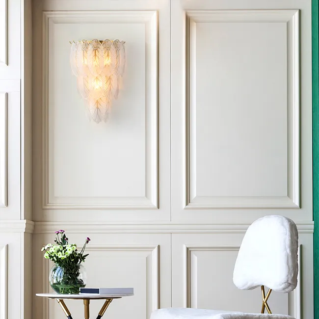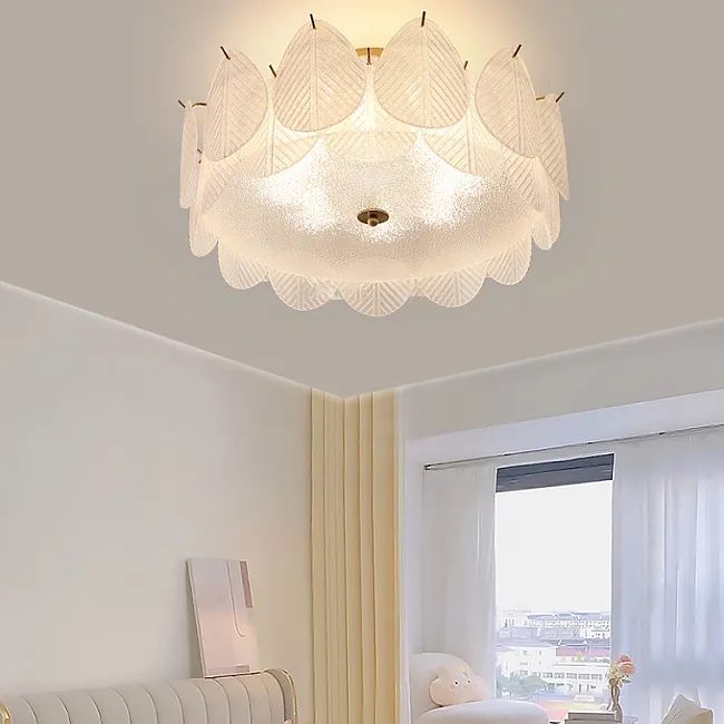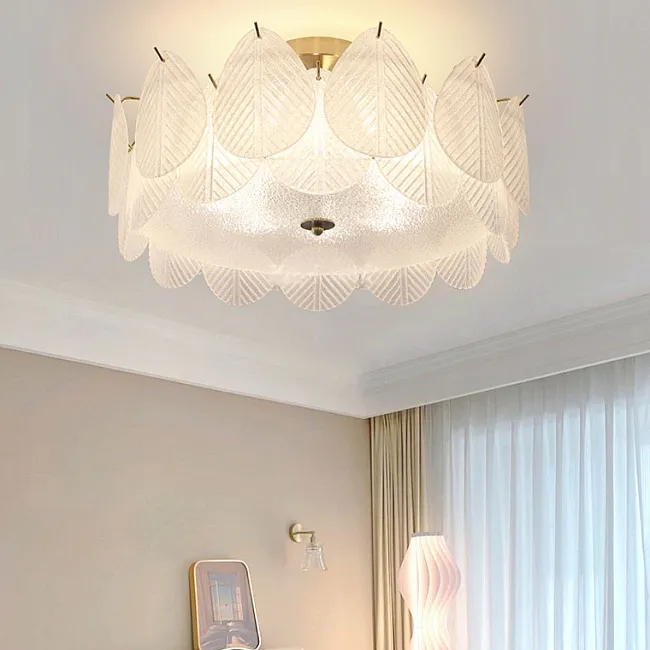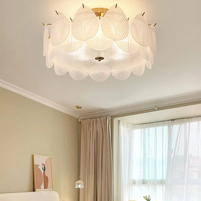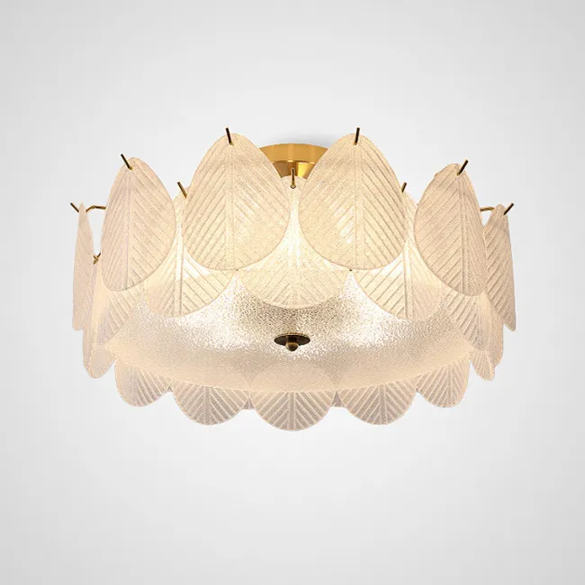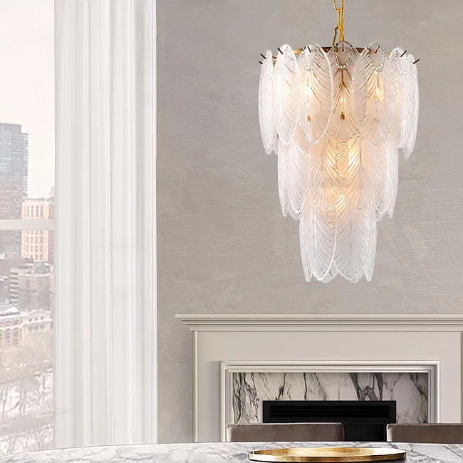 Серия каскадных люстр с листовидными рассеивателями из рельефного стекла