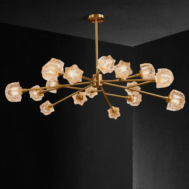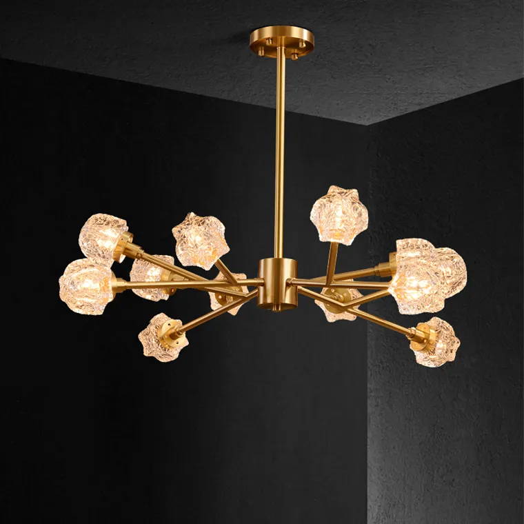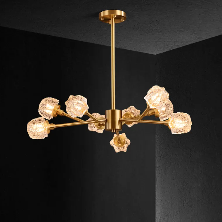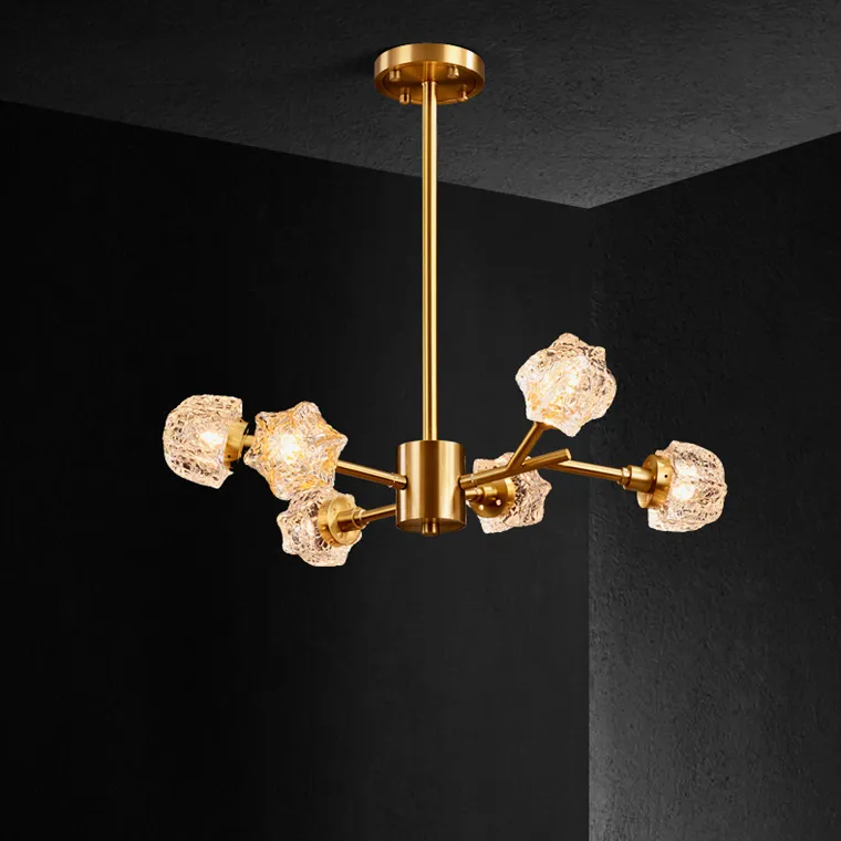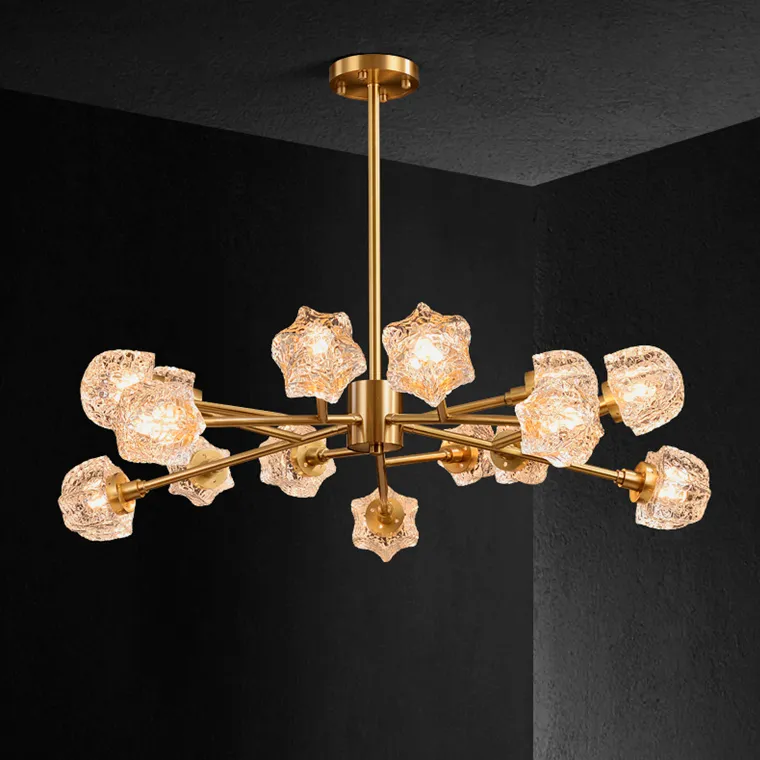 Линейка люстр на металлическом каркасе с плафонами из рельефного стекла