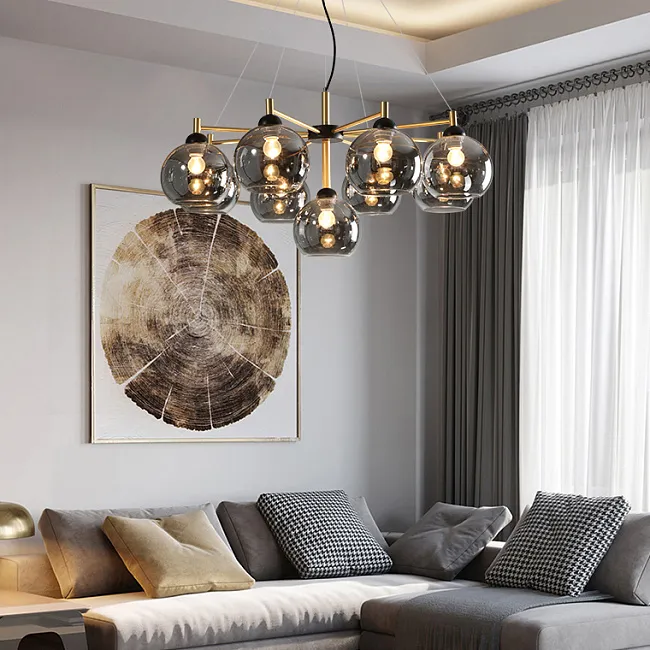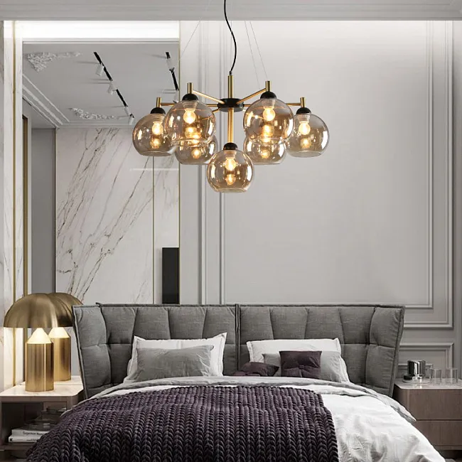 Линейка люстр на металлическом каркасе с плафонами из рельефного стекла