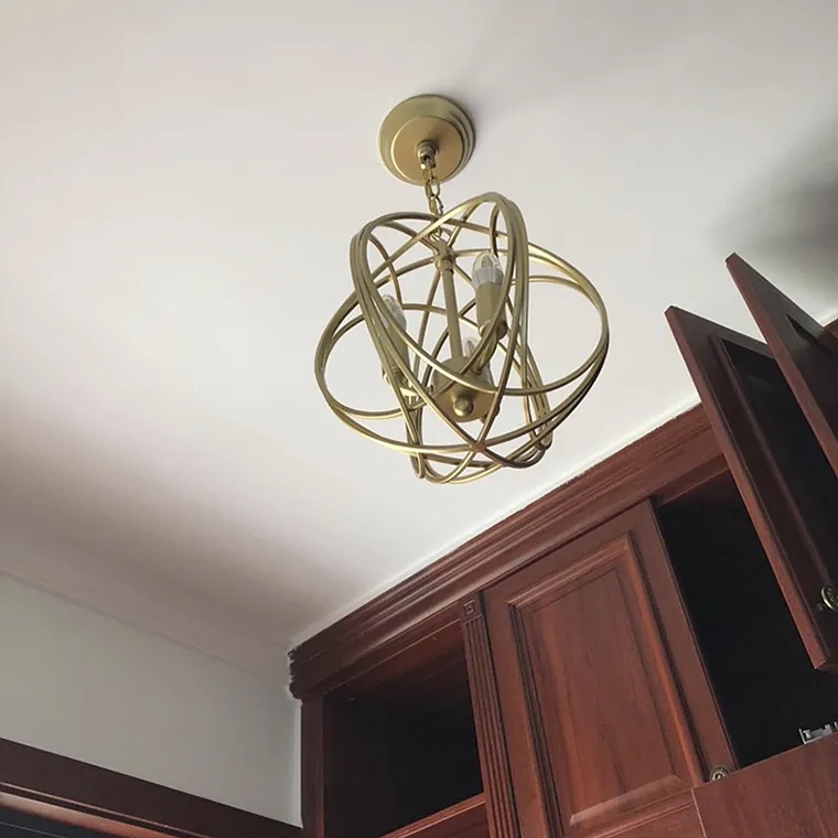 Подвесная люстра крепится на цепь к потолку, выполнена в стиле американского минимализма. Металлический каркас в форме шара представлен в оттенке шампань. В конструкции два варианта количества ламп - 3 или 5 штук. Люстра подвесная PASADENA B в стилистике минимализма дополнит интерьер любого помещения, а необычные детали создадут особую атмосферу как для рабочего кабинета, так и для кухни или гостинной.