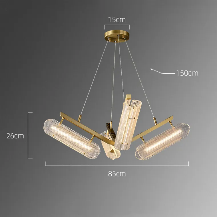 Светодиодная люстра с цилиндрическими плафонами из рельефного стекла на V-образных рожках