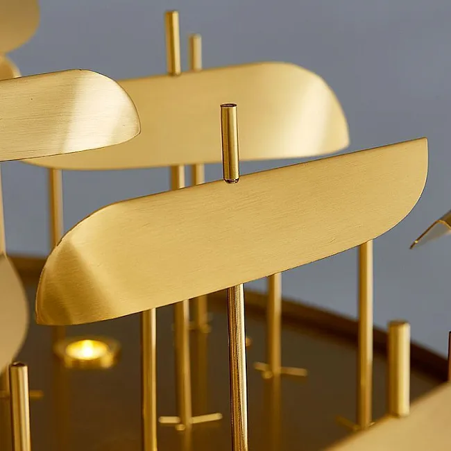 Корпус, выполненный из латуни, имеет круглую форму. Но настоящей изюминкой является стилизация молодых листьев лотоса, которая придает этому произведению искусства легкость и изящество.