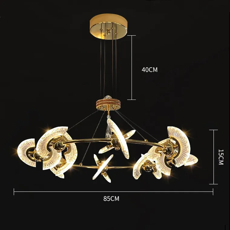 Кольцевая светодиодная люстра с плафонами в виде двух рельефных поворотных лопастей с шарообразным металлическим центром