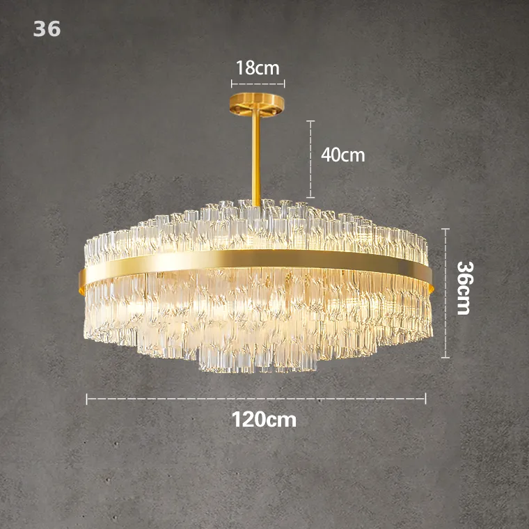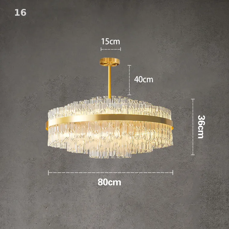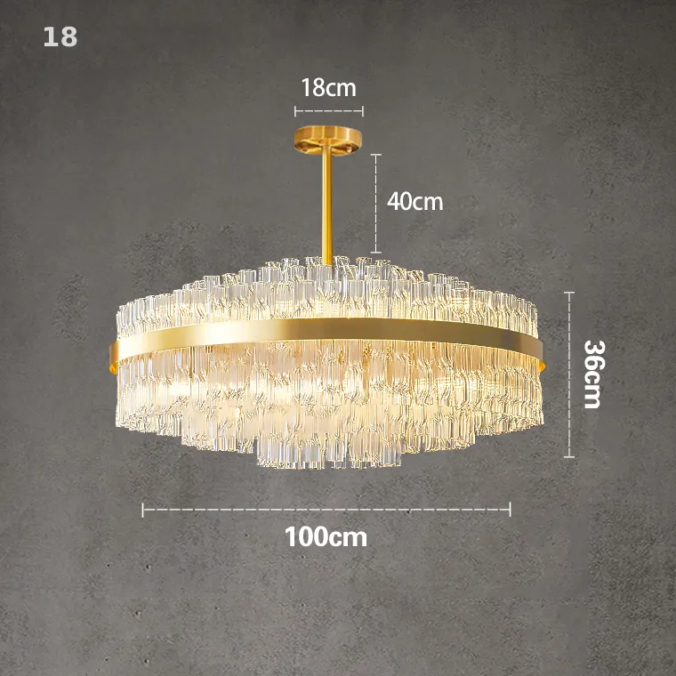 Серия многоярусных люстр с цилиндрическими рассеивателями в виде стеклянных колб на латунном каркасе