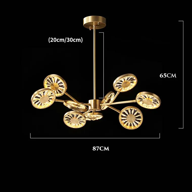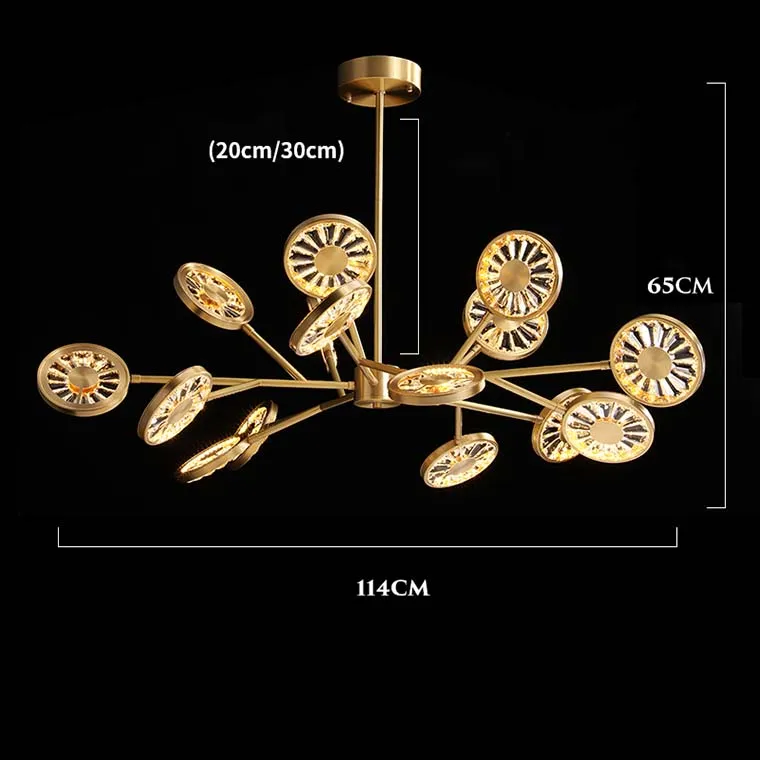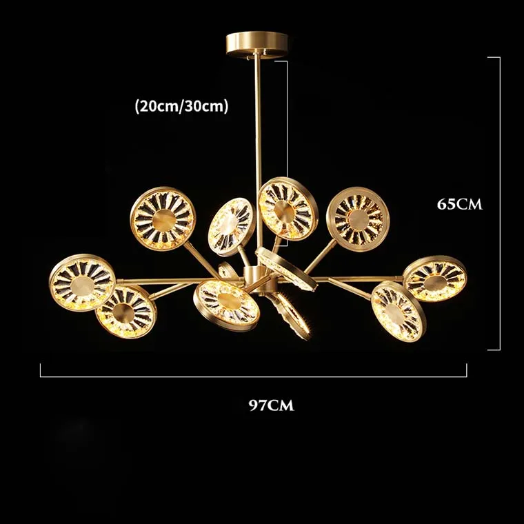 Люстра RALDA на лучевом каркасе из металла с плоскими кристальными плафонами с металлической серединой станет ярким современным украшением комнаты. Выполненные в виде одуванчиков плафоны смягчают общий интерьер и выигрышно смотрятся на фоне спокойной обстановки комнаты. Большой общий диаметр люстры и разнонаправленные лампы позволяют осветить широкую область, что соединяет различные предметы интерьера в единый образ. Стильное решение для смелых хозяев.