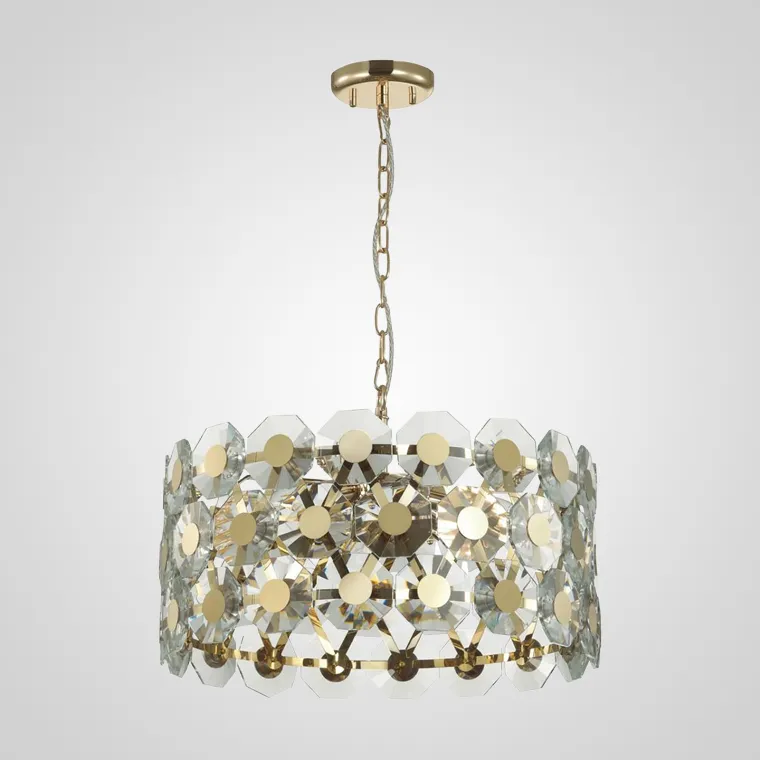 Подвесная люстра с ячеистым каркасом и гранеными стеклянными рассеивателями с золотой сердцевиной
