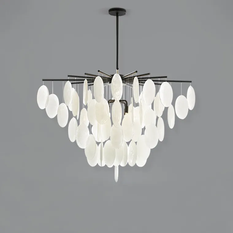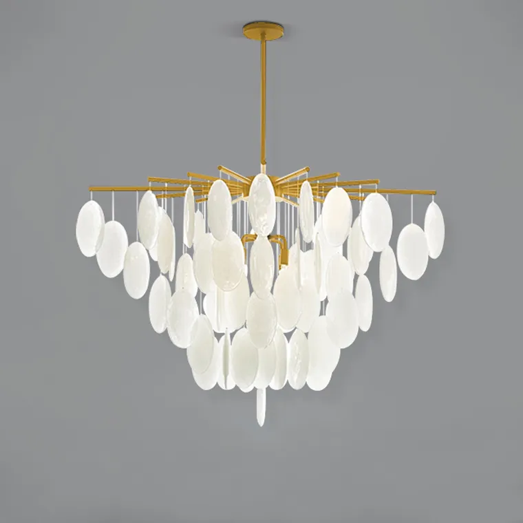 Серия люстр с каскадным абажуром из круглых подвесок из рельефного стекла