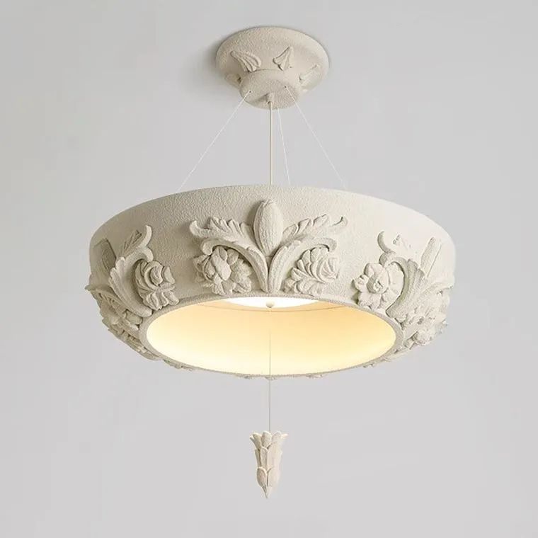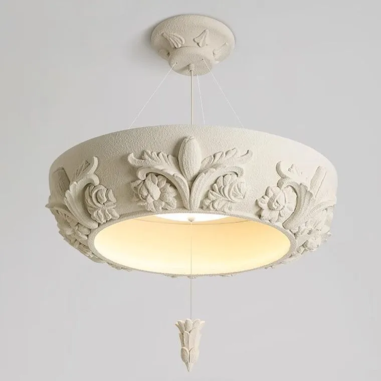 Каждая люстра из этой серии сочетает в себе классические элементы и современные технологии. Круглая форма и роскошная имитация лепнины напоминают о временах изысканного барокко, добавляя нотку аристократичности вашему дому. Декоративный подвес на струне, исходящий из центра люстры, придает ей особое очарование, делая композицию завершенной и гармоничной.