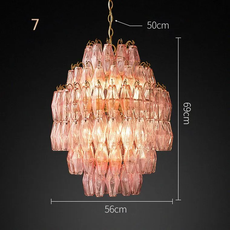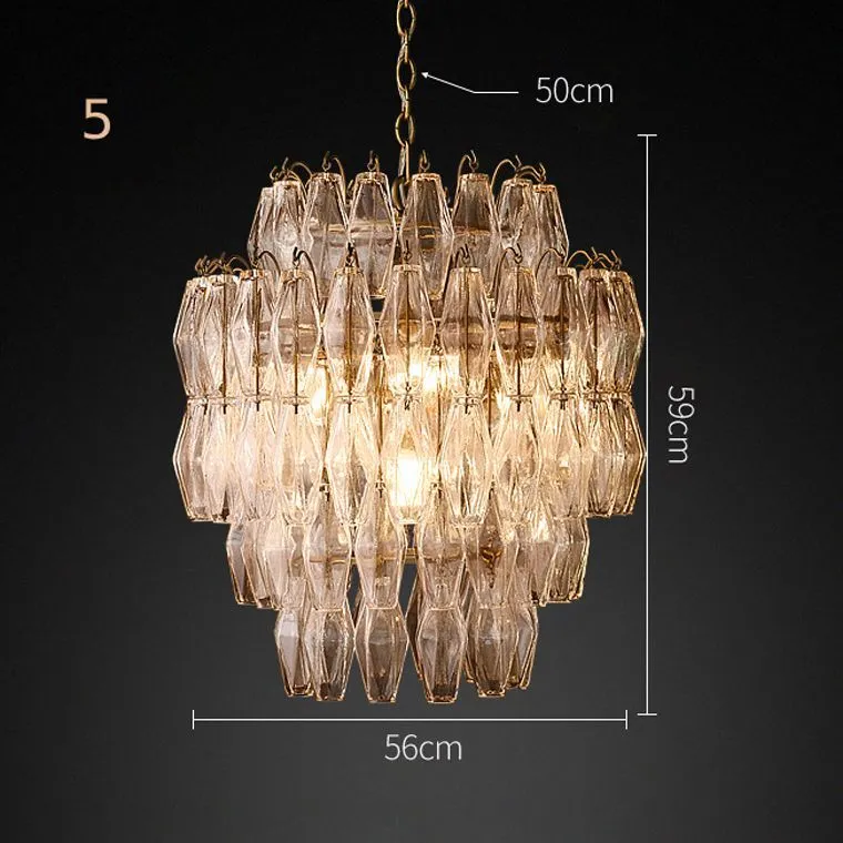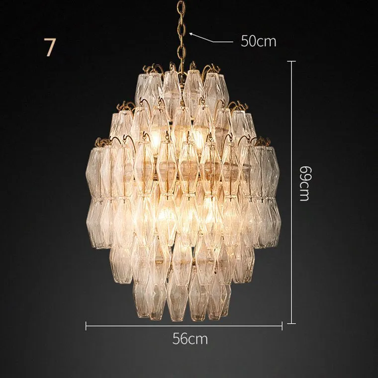 Серия подвесных люстр с многоуровневым абажуром из подвесок ромбовидной формы представляет собой великолепное сочетание элегантности и изыска. Нежные и воздушные, они словно танцуют в воздухе, создавая великолепную атмосферу и добавляя шарма любому интерьеру.