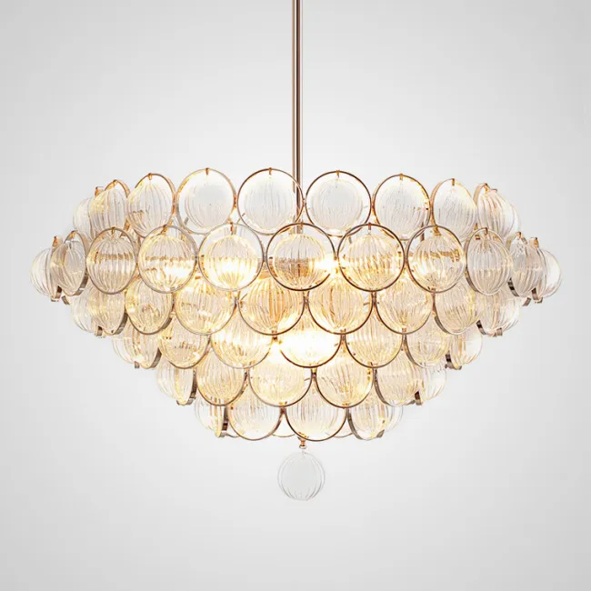 Серия подвесных люстр с многоуровневым абажуром из подвесок ромбовидной формы представляет собой великолепное сочетание элегантности и изыска. Нежные и воздушные, они словно танцуют в воздухе, создавая великолепную атмосферу и добавляя шарма любому интерьеру.