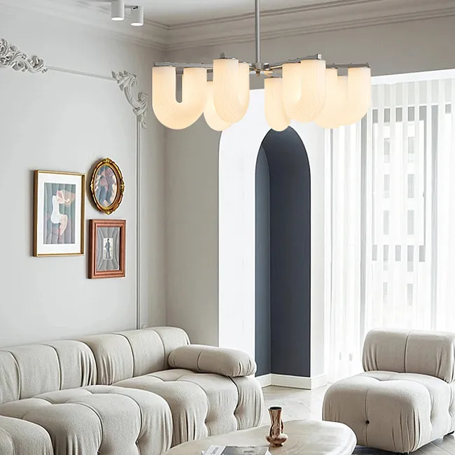 Особая черта этой люстры - двунаправленный поток света. Он идет как вверх, освещая потолок и придавая комнате воздушность и простор, так и вниз, создавая комфортное освещение для общения, чтения или работы. Такой подход делает освещение более равномерным и приятным.