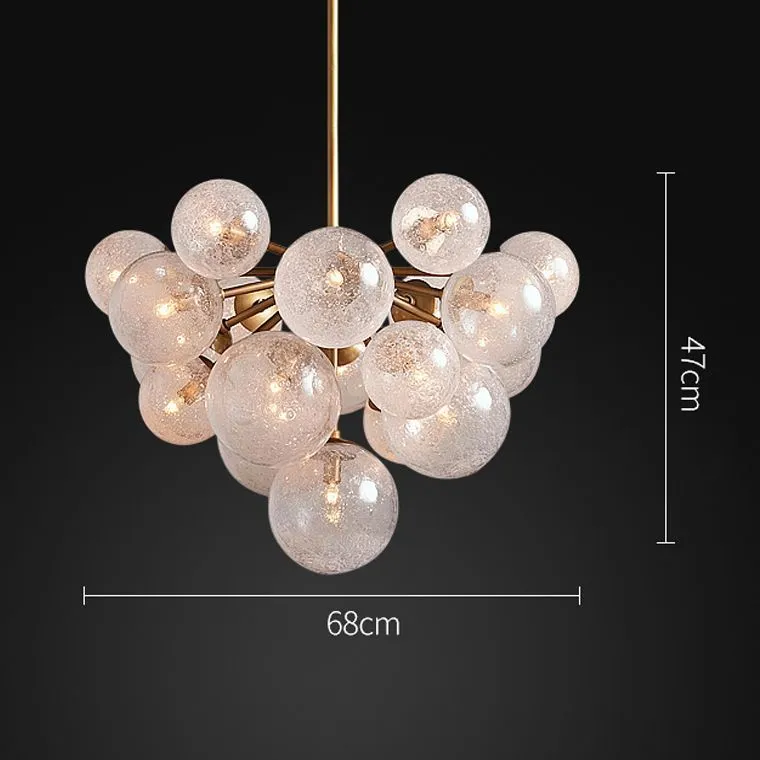 Представьте себе таинственный космос, где из темноты внезапно вспыхивает звезда. Серия наших люстр с шарообразными плафонами напоминает космическую симфонию - множественные «планеты» разного размера с эффектом воздушных пузырьков возвышаются на элегантном латунном корпусе. Это не просто люстра, это воплощение магии вселенной в вашей гостиной или спальне.