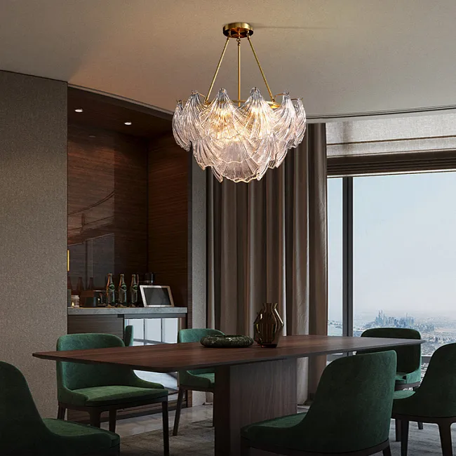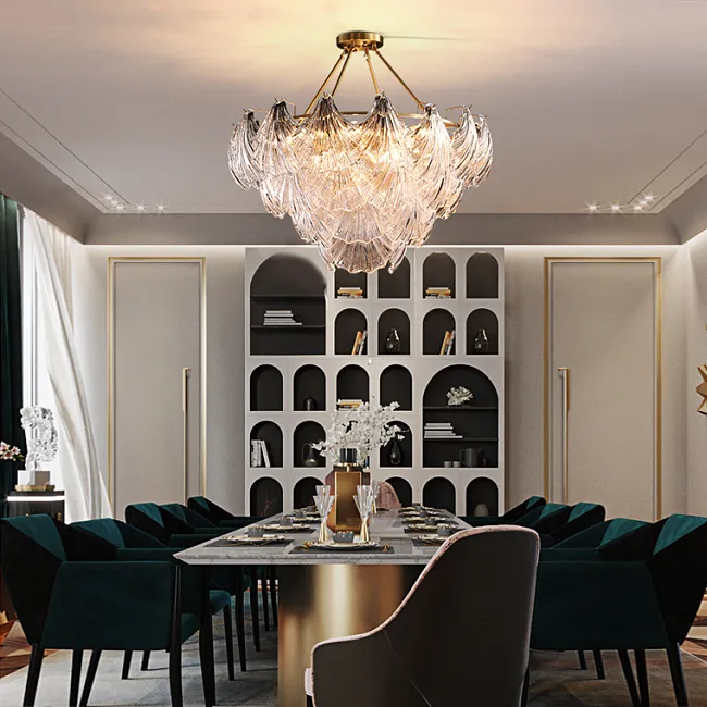 Дизайнерская люстра SHELLS в современном стиле станет дизайнерским центром комнаты. Стеклянные подвесы в виде раковин сделают ваш интерьер современным и запоминающимся. Полуматовый цвет плафонов хорошо сочетается как с базовыми цветами в интерьере, так и яркими и сочными. Несмотря на свой большой размер люстра не отягощает комнату, придает ей дополнительную воздушность и смягчает линии остальных предметов мебели.