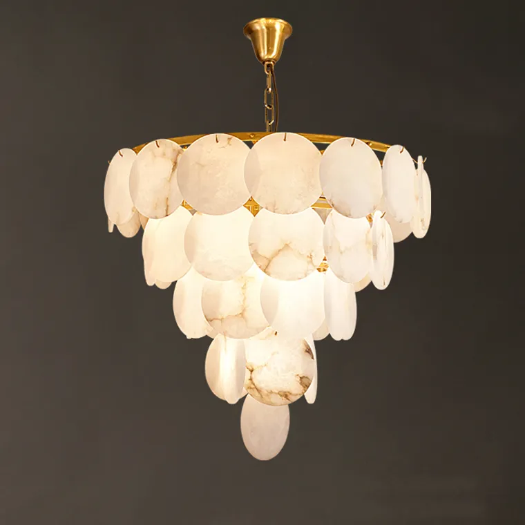 Дизайнерская люстра с многоуровневым абажуром из мраморных подвесок круглой формы