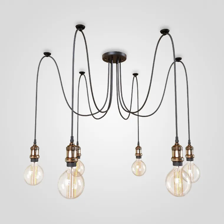 Подвесная люстра-паук с открытыми источниками света в стиле лофт